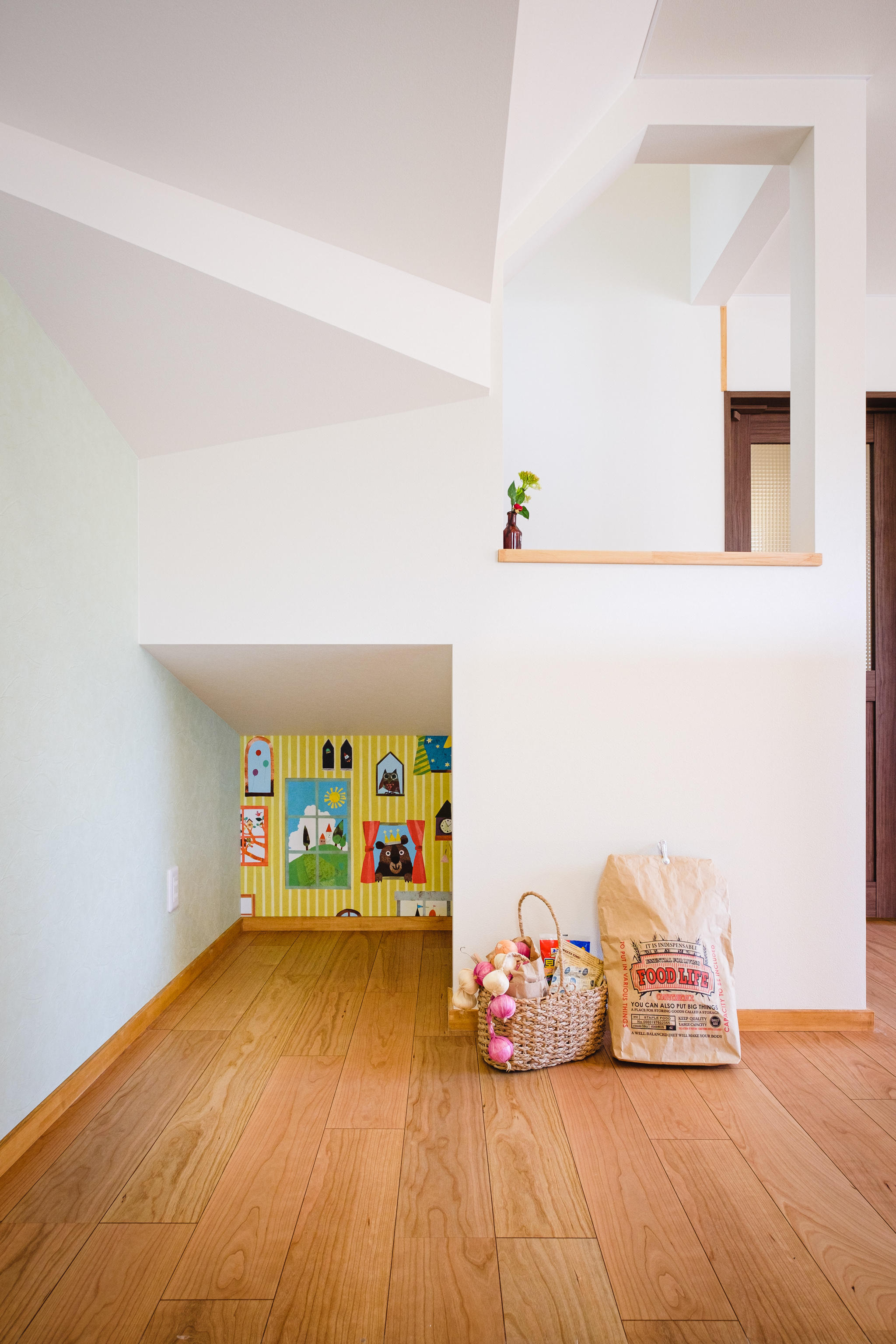 長いようで短い大切な時を、このお家で過ごしたいという思いがたくさん詰まった、かわいらしいマイホームです。ご夫妻の娘様お二人に寄せる温かい想いを形にするために、建設中の想い出となるように、ご家族皆様に現場に来ていただき
