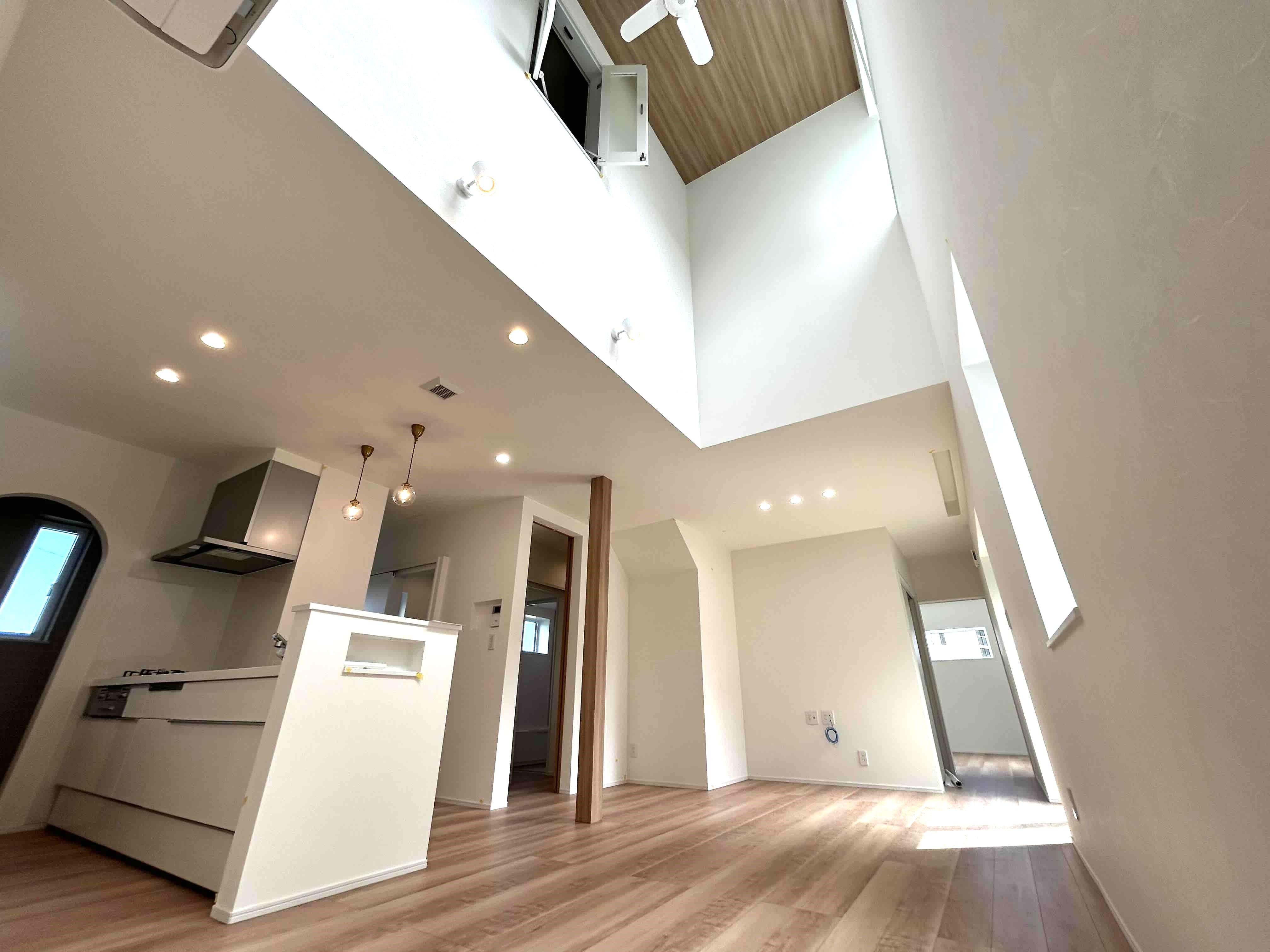 室内を明るく開放的にする工夫として吹き抜けを設置、