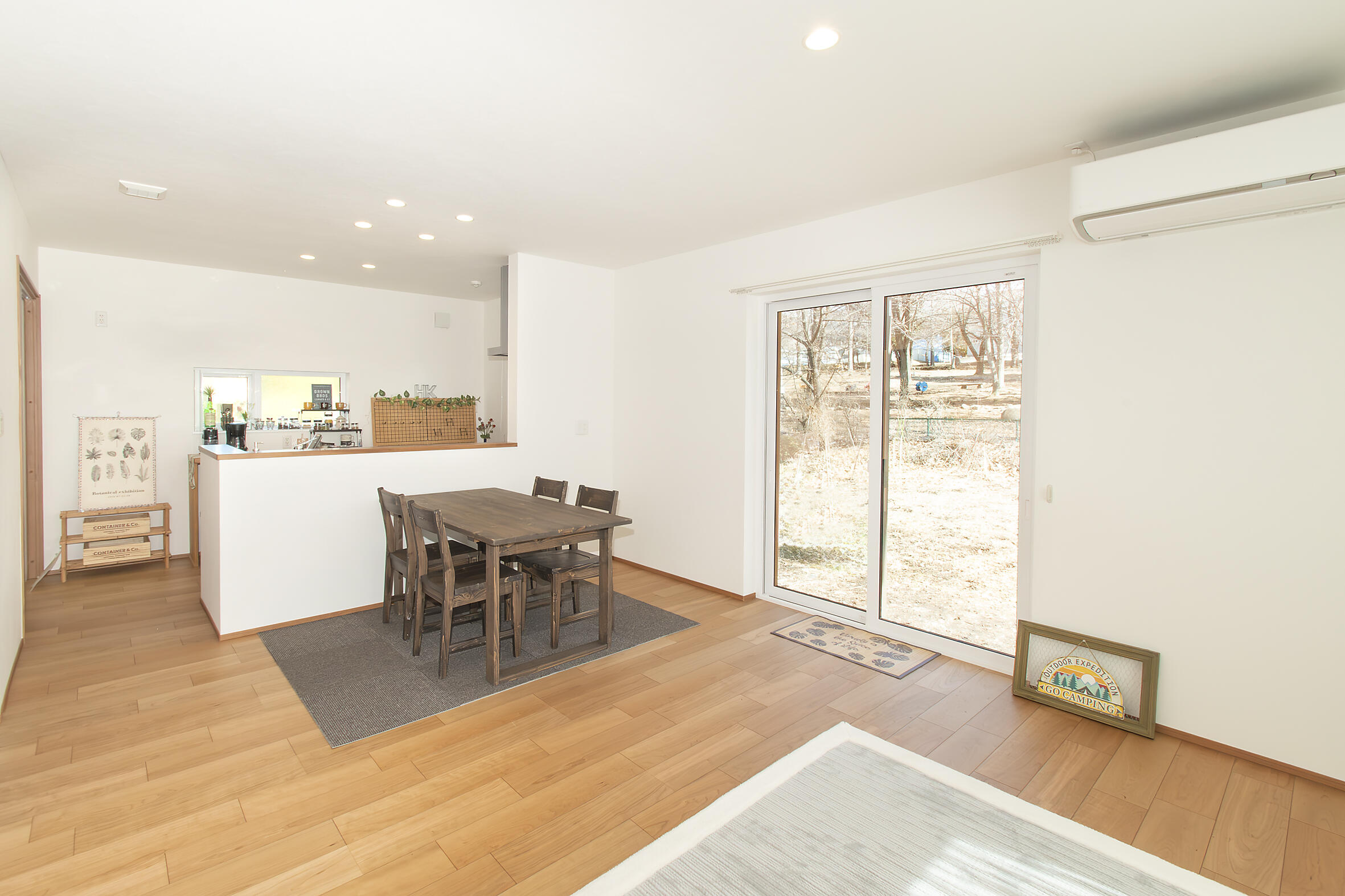 3世代のご家族がくつろぐ空間には、明るい色合いの素材を