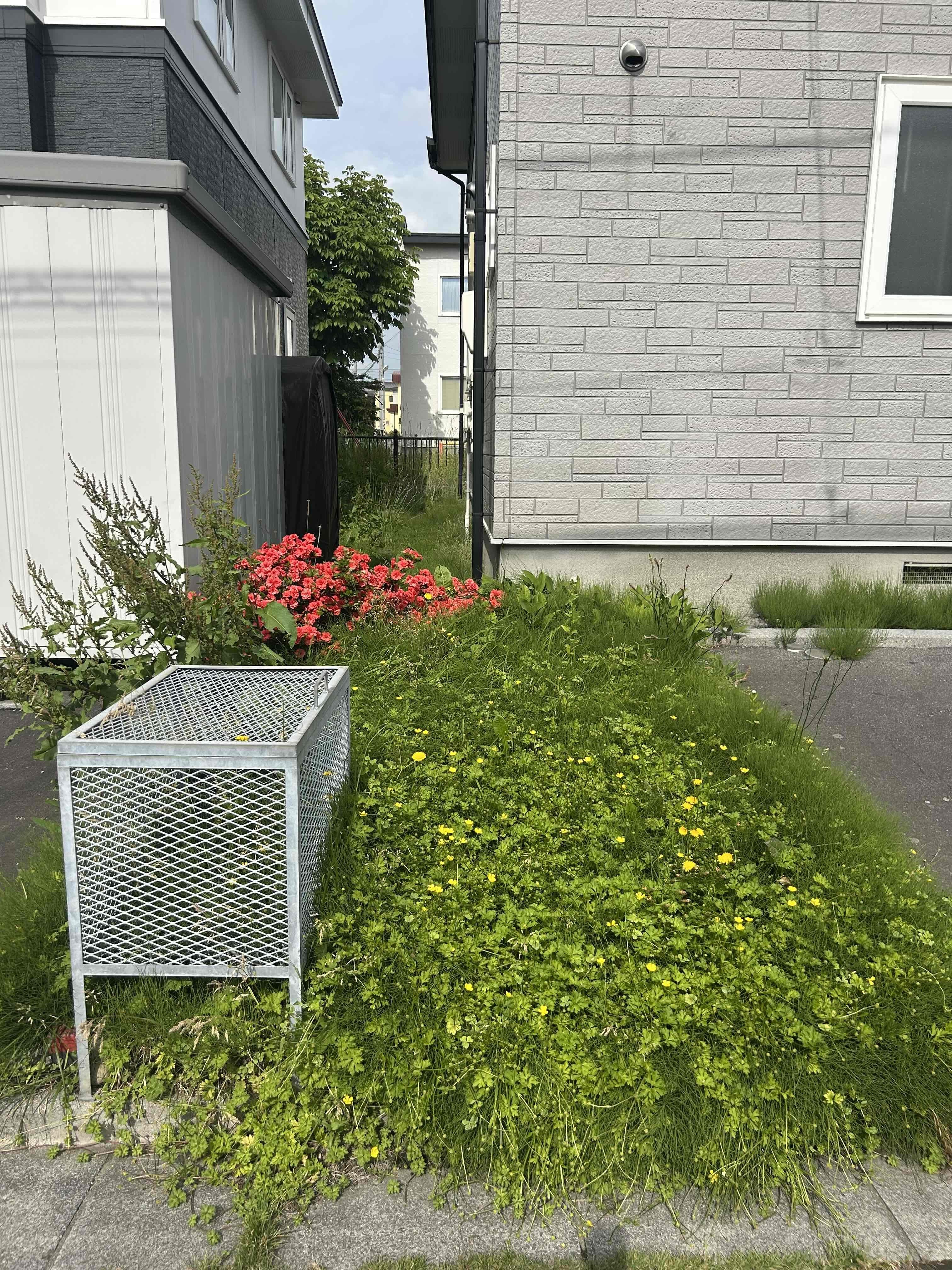 犬走りや花壇に雑草が生えて、年々除草するのが大変でお困りになっていらっしゃるとのことでした。
