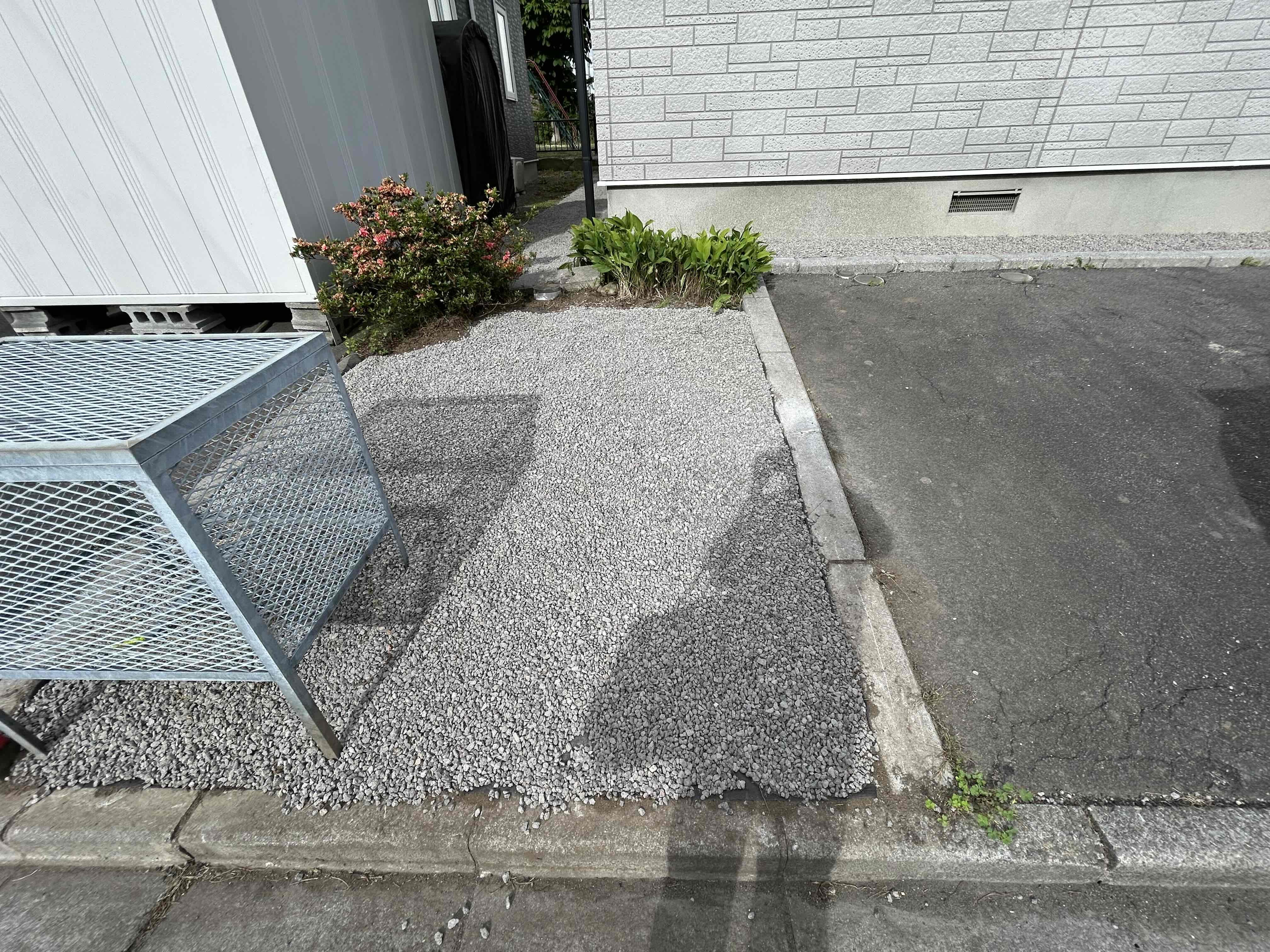| 工期 | 除草及び防草シート1日 ポーチ階段タイル1日 |