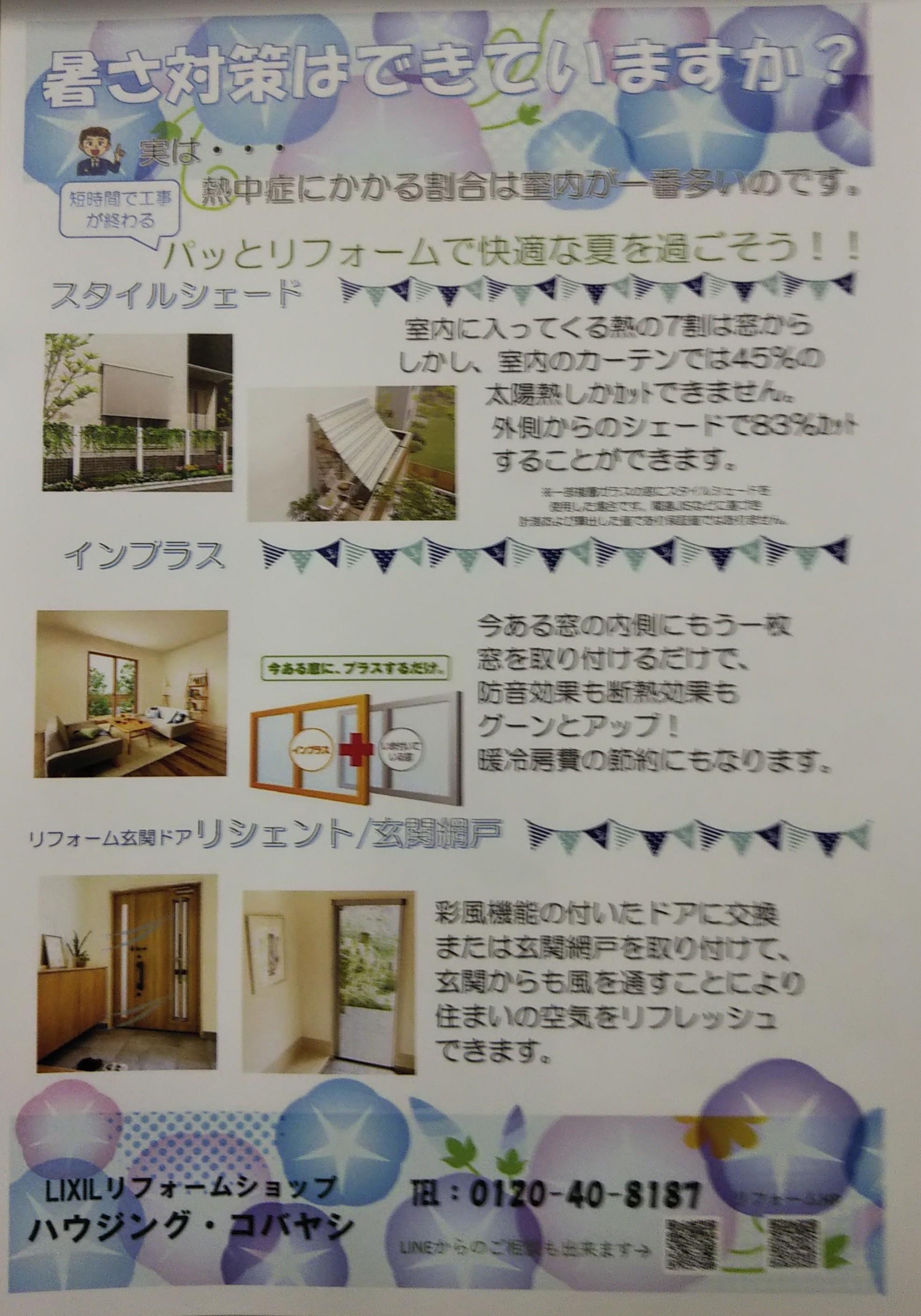 短時間で工事が終わるパッとリフォームで暑さ対策をすることが出来ます。