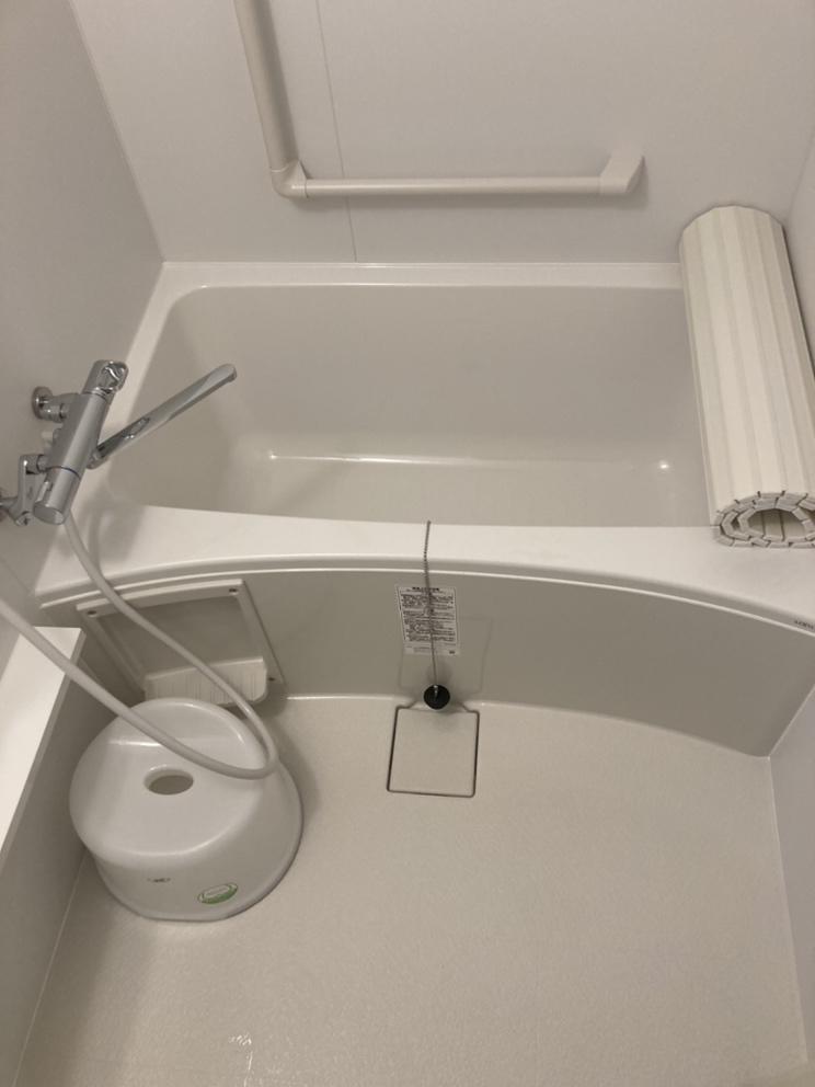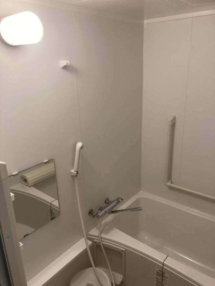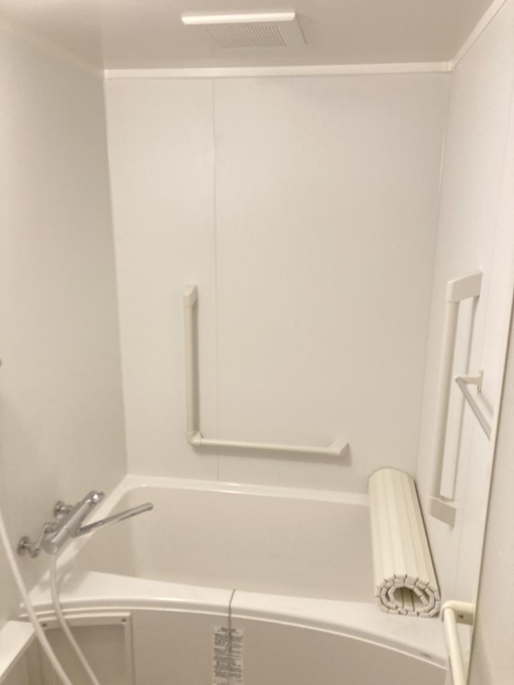 ご年配で足が悪くなってきたため浴室入口建具と浴槽部の段差を低くして入りやすくしたいとのご依頼でした。 浴室入口、浴槽部に手すりを新設しまたぎを低くし、浴室床の材質を滑りにくい仕様に変更しました。 タイルからの変更で清掃性もよく、明るくなりました。