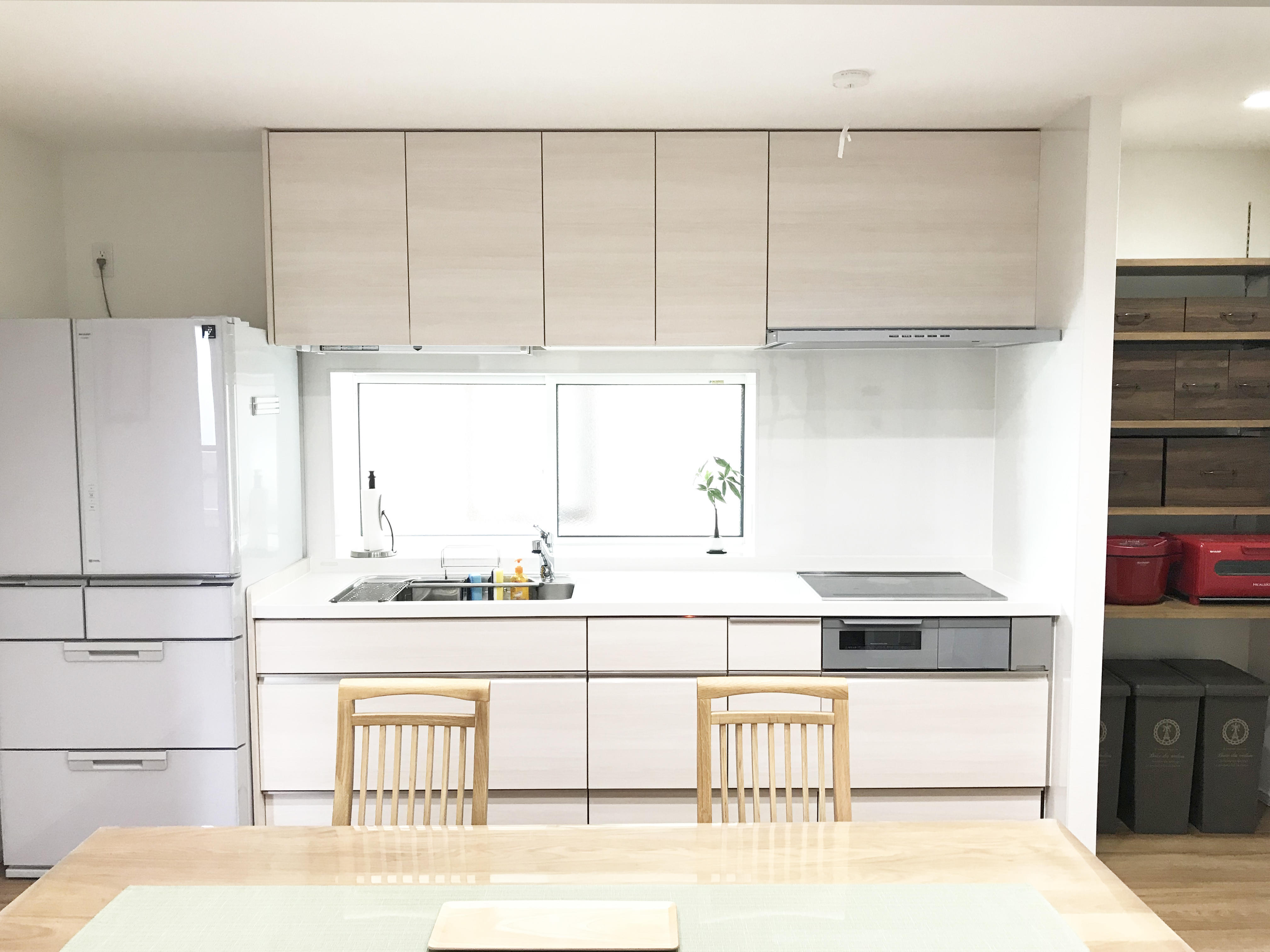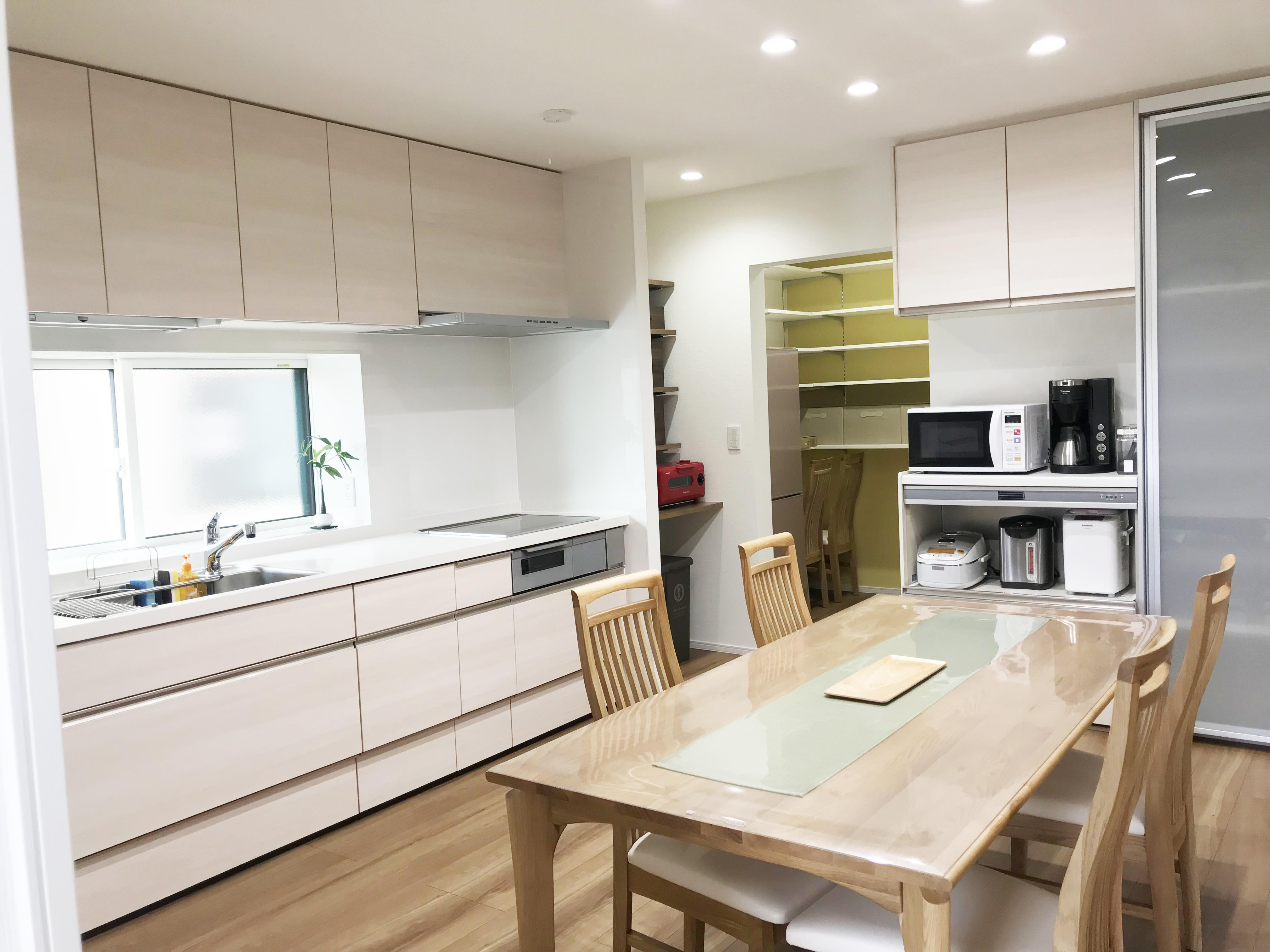 DKはスペースを広げキッチンを入替え、新たにパントリーを設置し十分な収納スペースを確保しました。