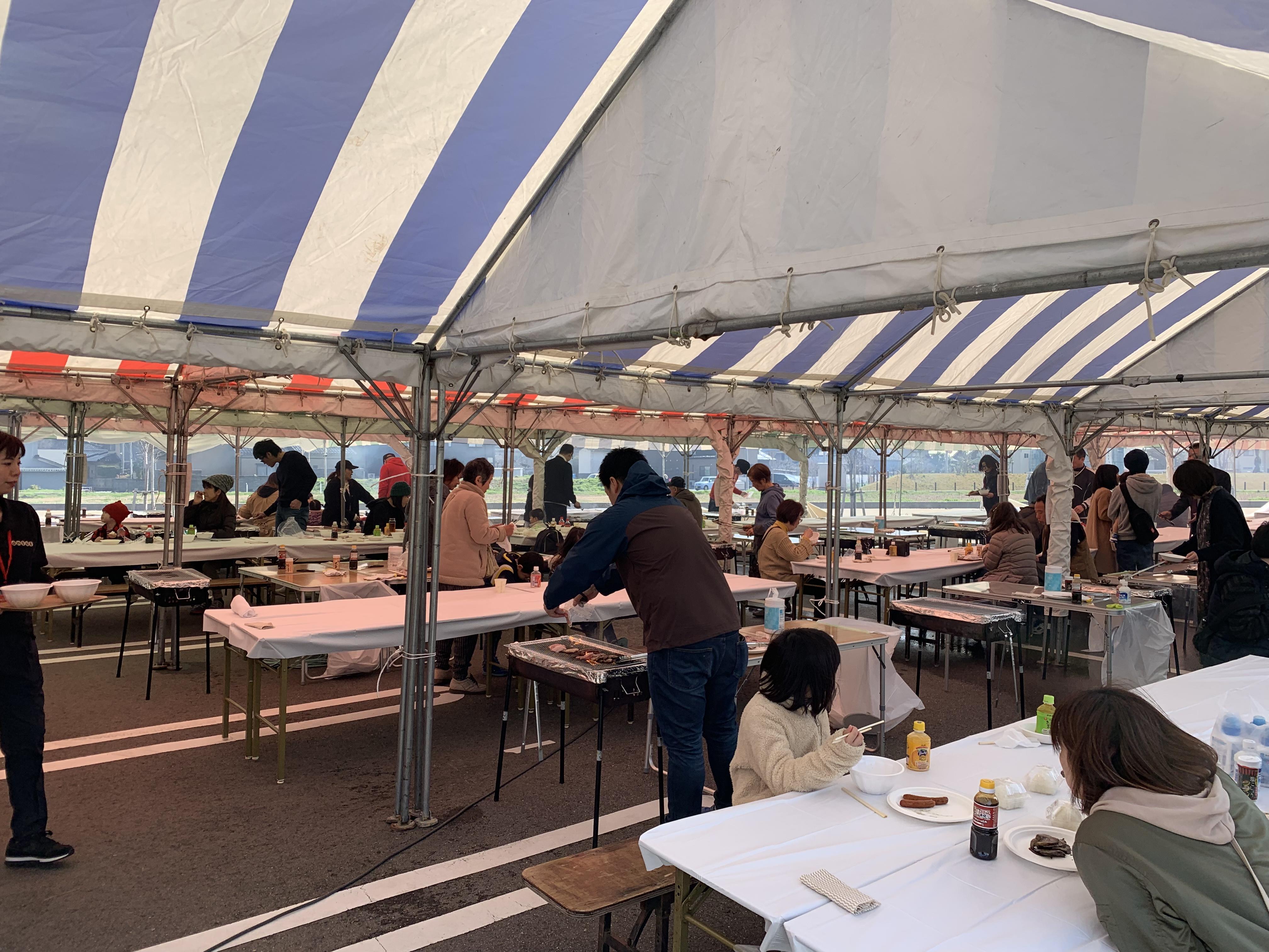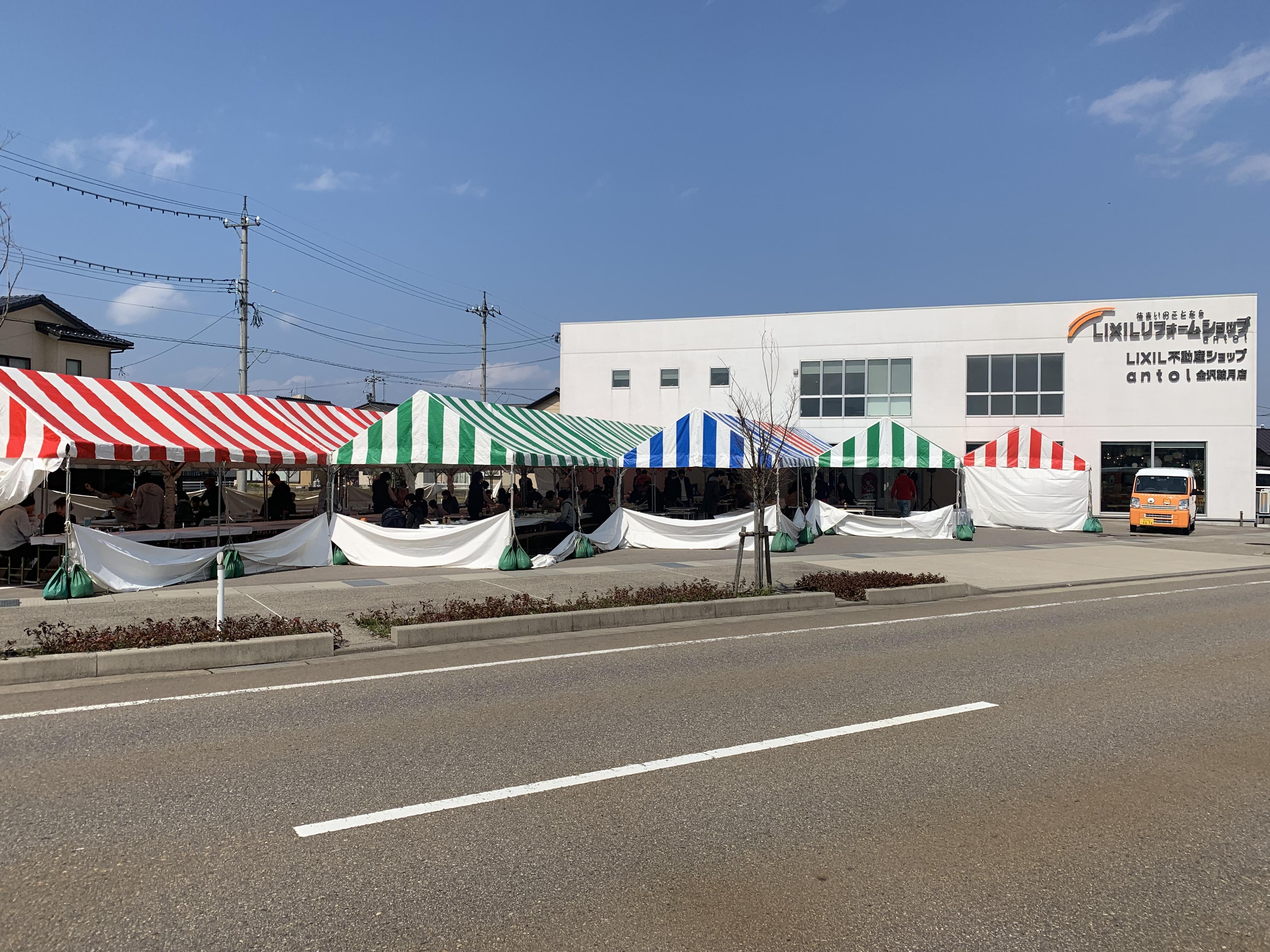 お店の駐車場いっぱいにテントを張り、参加いただいた皆様にはBBQを楽しんでいただきました。