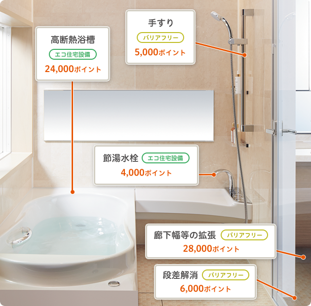 このようにお風呂やキッチンをリフォームする際にもたくさんのポイントがもらえます。