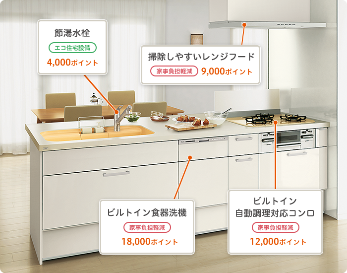 例えばキッチンや、浴室をリフォームするとこのようなポイントになります。