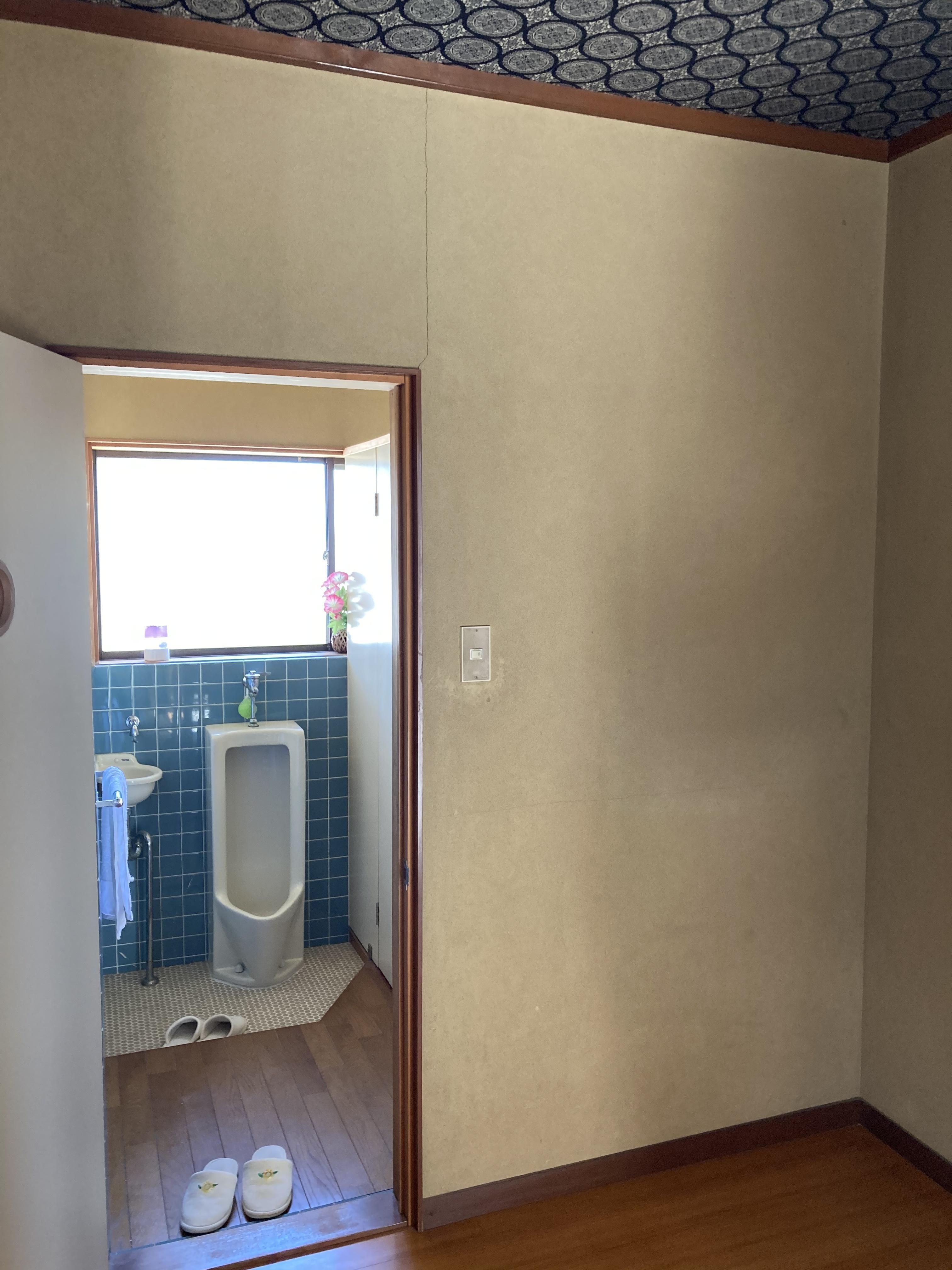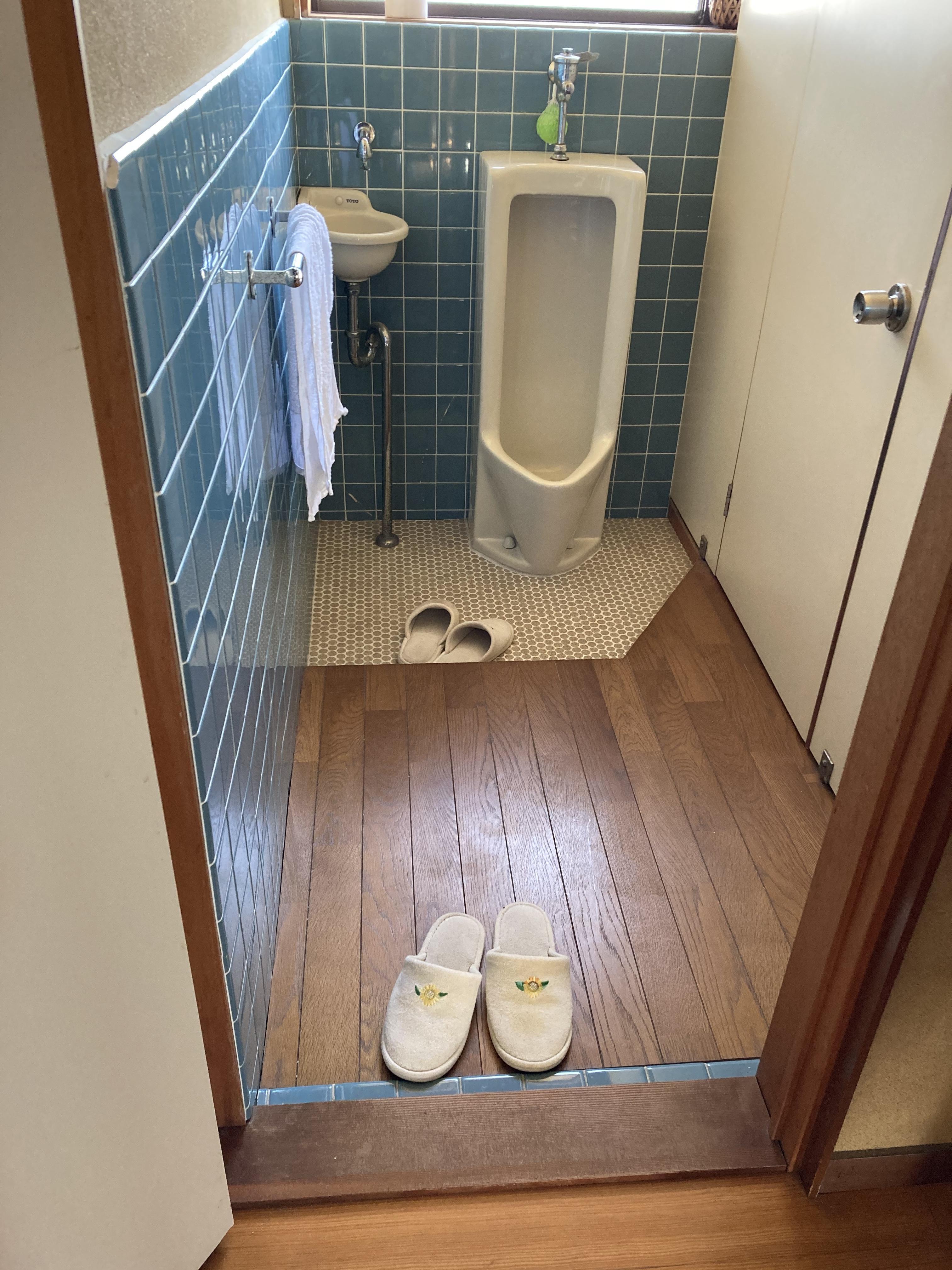 不必要となった小便器と壁により狭くて使いにくい空間。