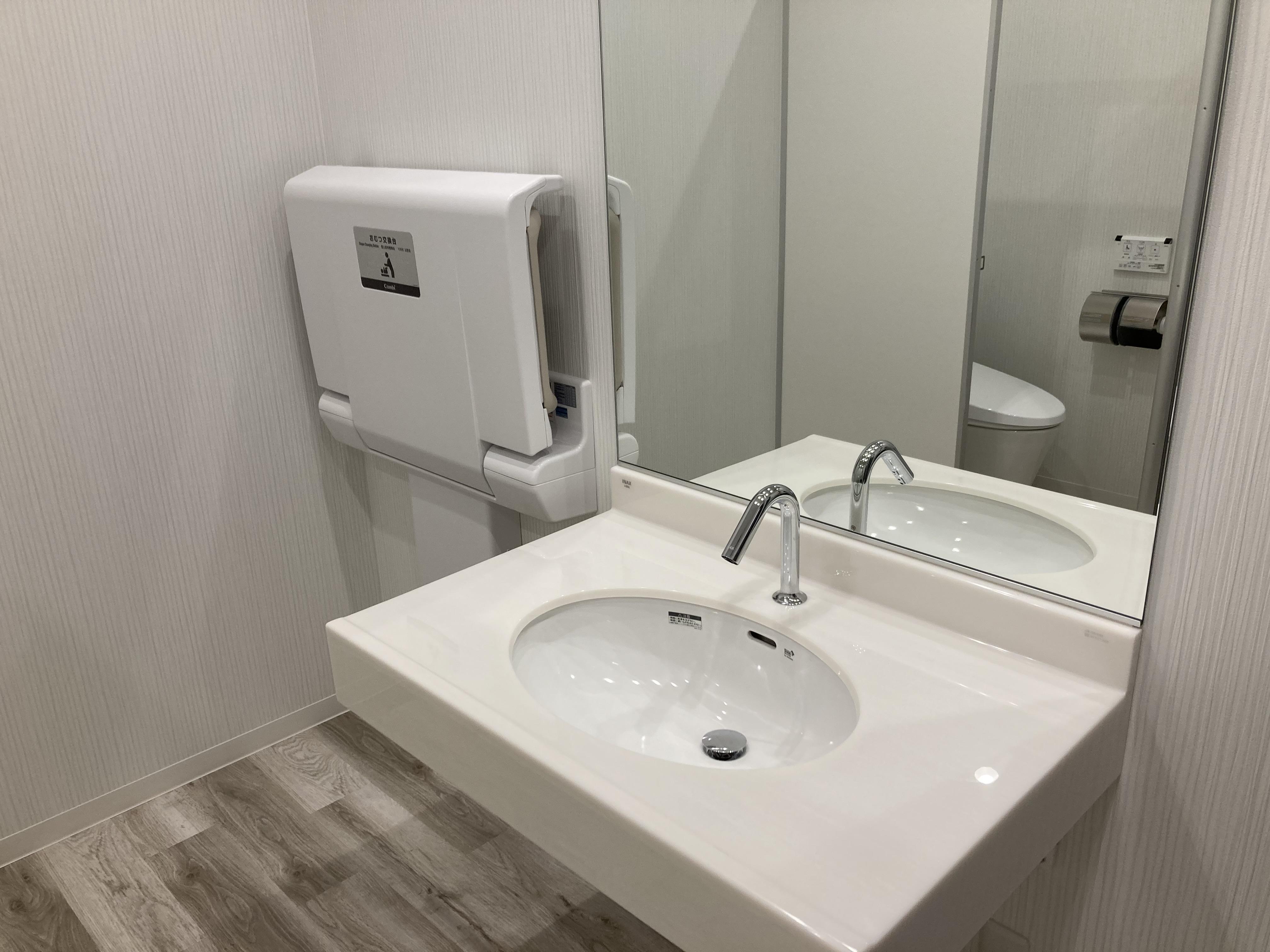 オムツ台等も完備しておりますの、小さなお子様連れでも安心です!