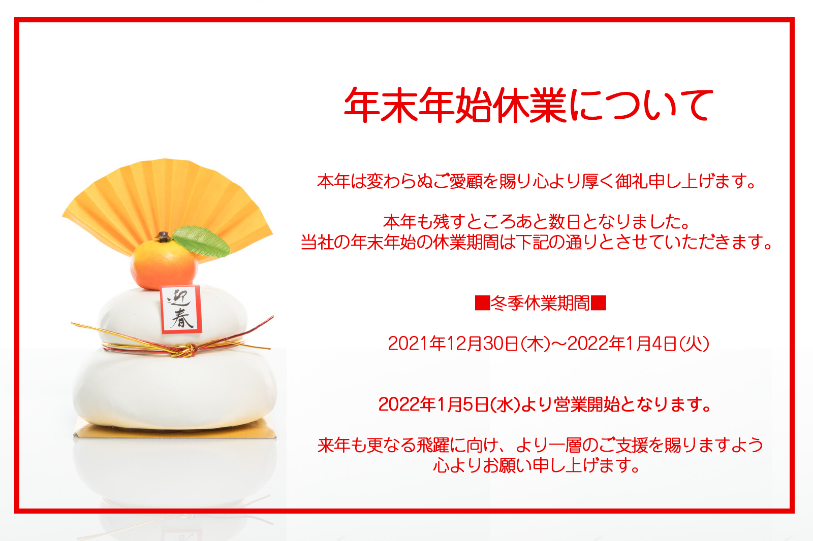 当社の年末年始の休業期間は下記の通りとさせていただきます。