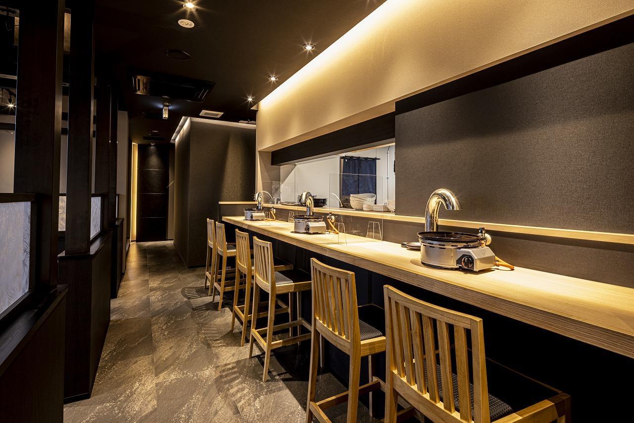 間接照明などで明暗をつけ、家具も一つ一つこだわり、高級感のあるおしゃれな焼肉屋さんになりました。