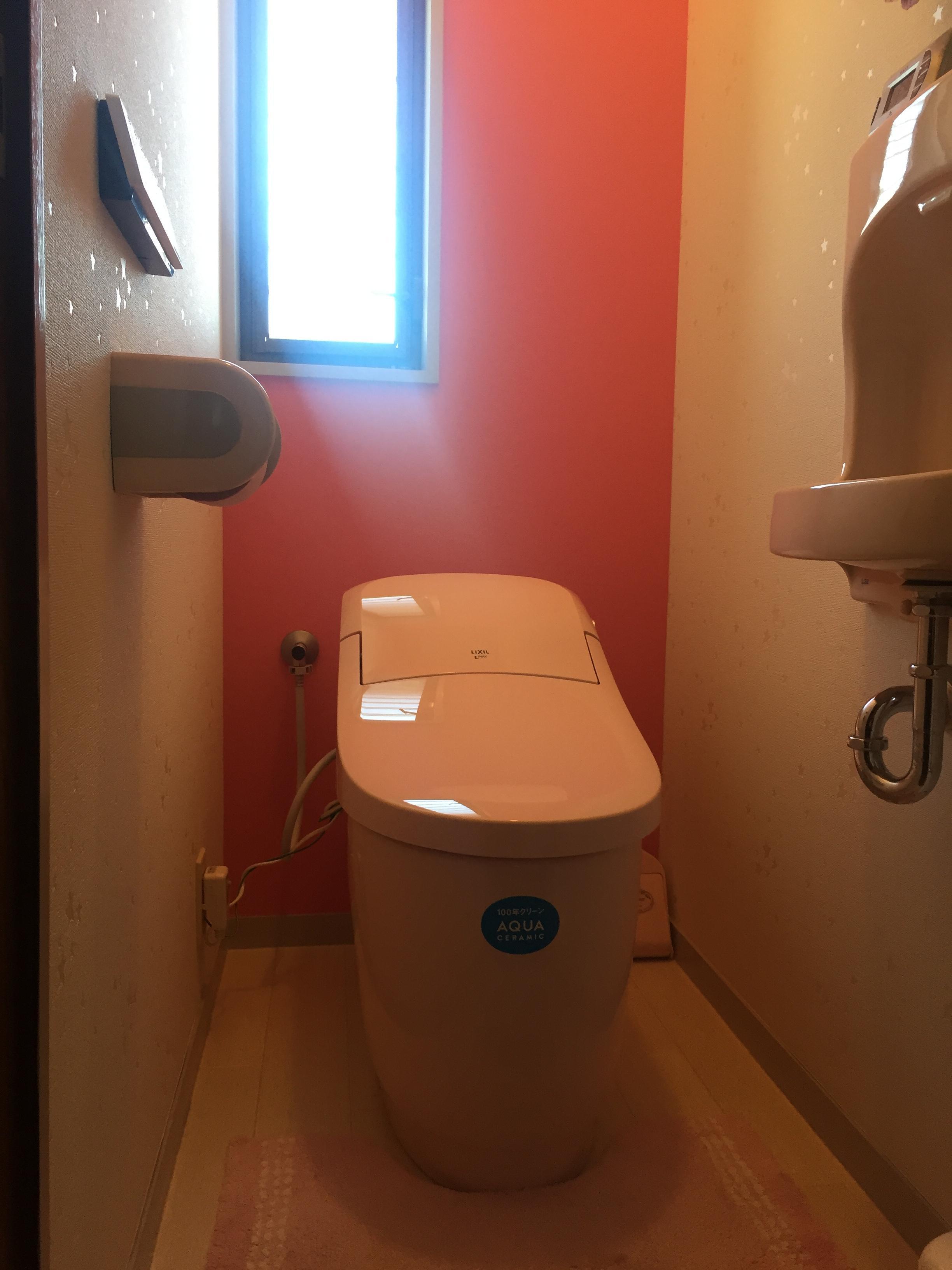 工事のきっかけは便器の水漏れでした。そこで、毎日使うトイレを新しくしたいという事で、今回はプレアスLSタイプをお勧めいたしました。個室内があまり広くないという事でしたので節水型のタンクレスタイプにしました。壁紙や床もこの機会に張替え、トイレの雰囲気をガラッと変えました。とても温かみのあるトイレへと生まれ変わりました。