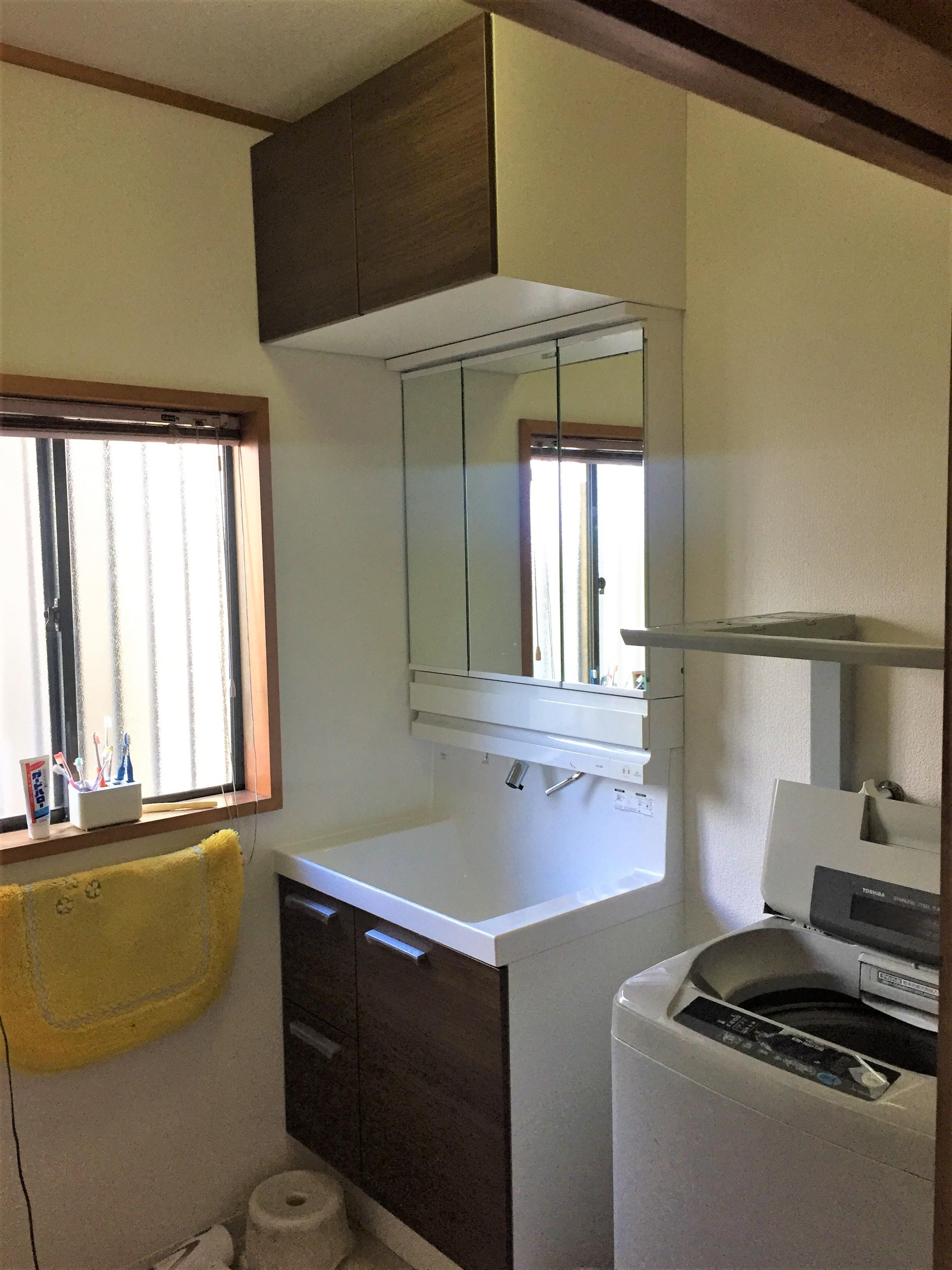冬は寒くて家のお風呂が使えなかったという事で毎日お風呂屋さんに通われていました。でもやっぱり自宅で暖かいお風呂に入りたいという事で浴室をリフォーム!この機会に洗面化粧台も取り替えました。浴室の窓も取り替え、浴室暖房機、洗面暖房機も取付て冬でも快適な浴室へと生まれ変わりました。