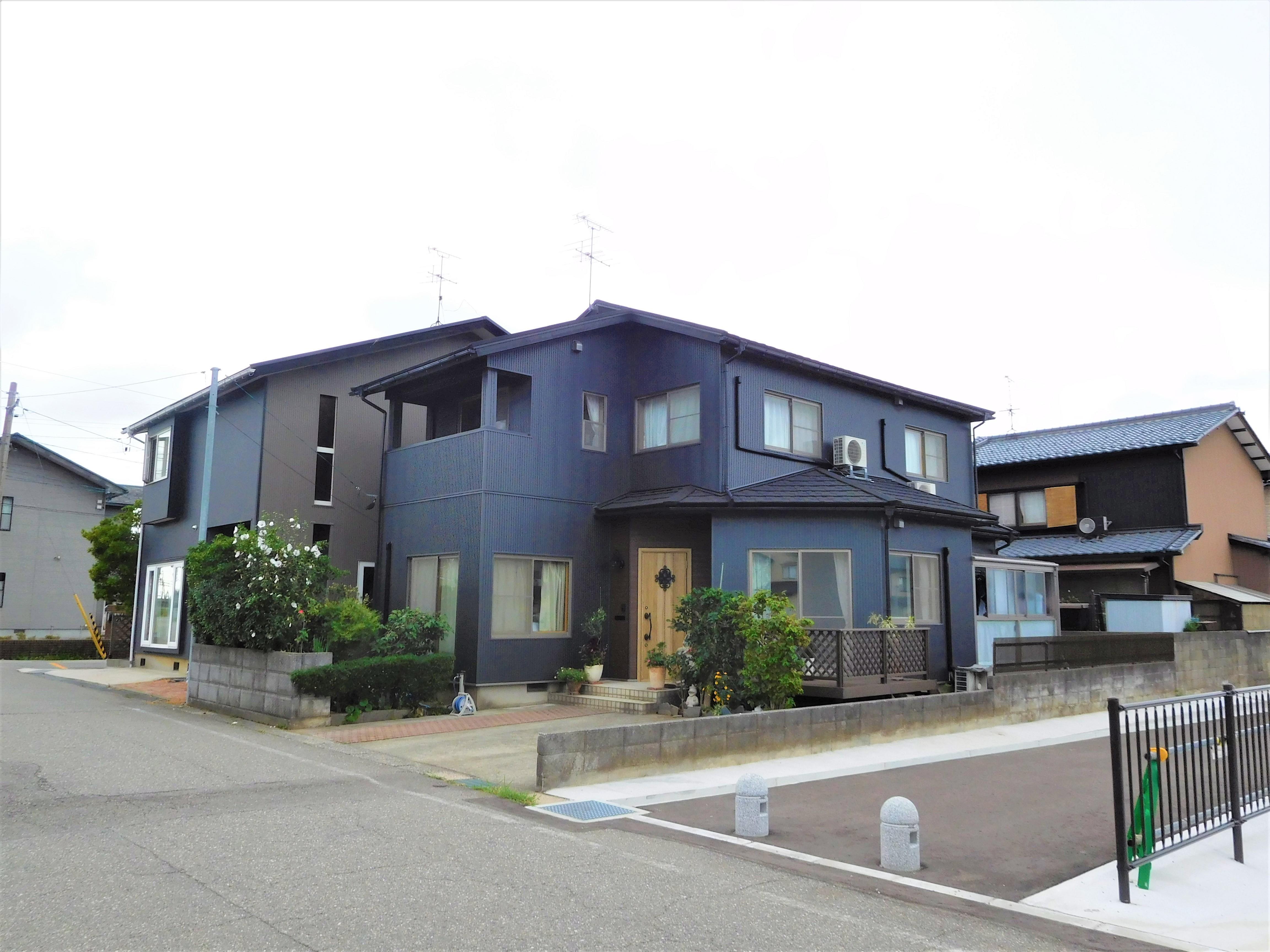 凍害による外壁の剥離や腐食が気になって外回りのリフォームをしたいとの事でご来店いただきました。少しでも今風の家になるようにとの事で外壁パースなども出しながら外壁材を選びました。外壁材はリフォームで多く使われている金属サイディングです。耐久性も高く、間に断熱材が入っていることや既存の外壁の上から貼って施工できることで断熱性能も高くとても人気の商品です。外回りのウッドデッキや、サンルームも新しく取替え、外観はまるで新築のように仕上がりました。