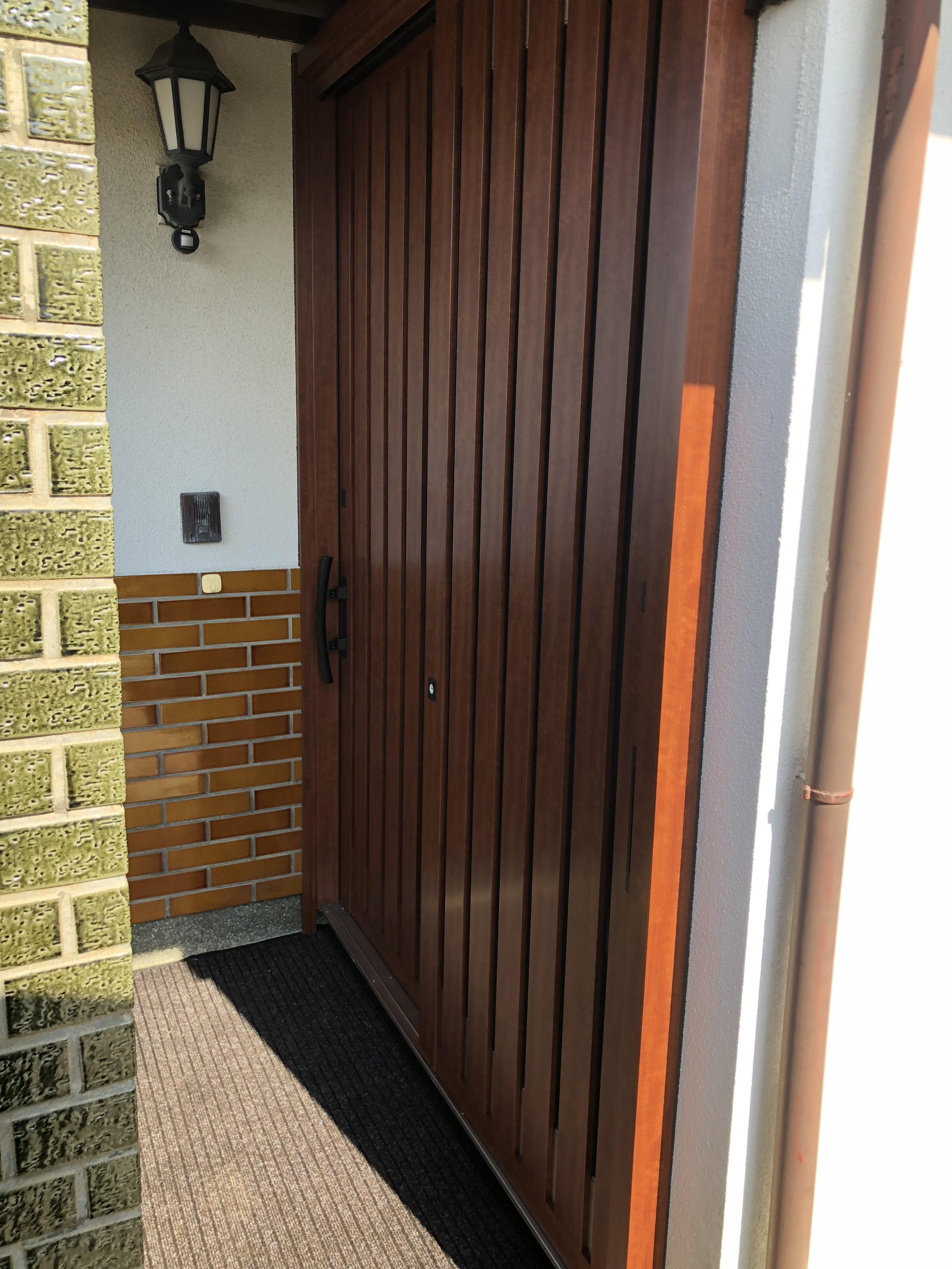 今回玄関ドアをリフォームし、外観は和風に仕上げることができました。さらに複層ガラスが入っているのでとても暖かい玄関ポーチになり、そして何より防犯性能も上がりました。