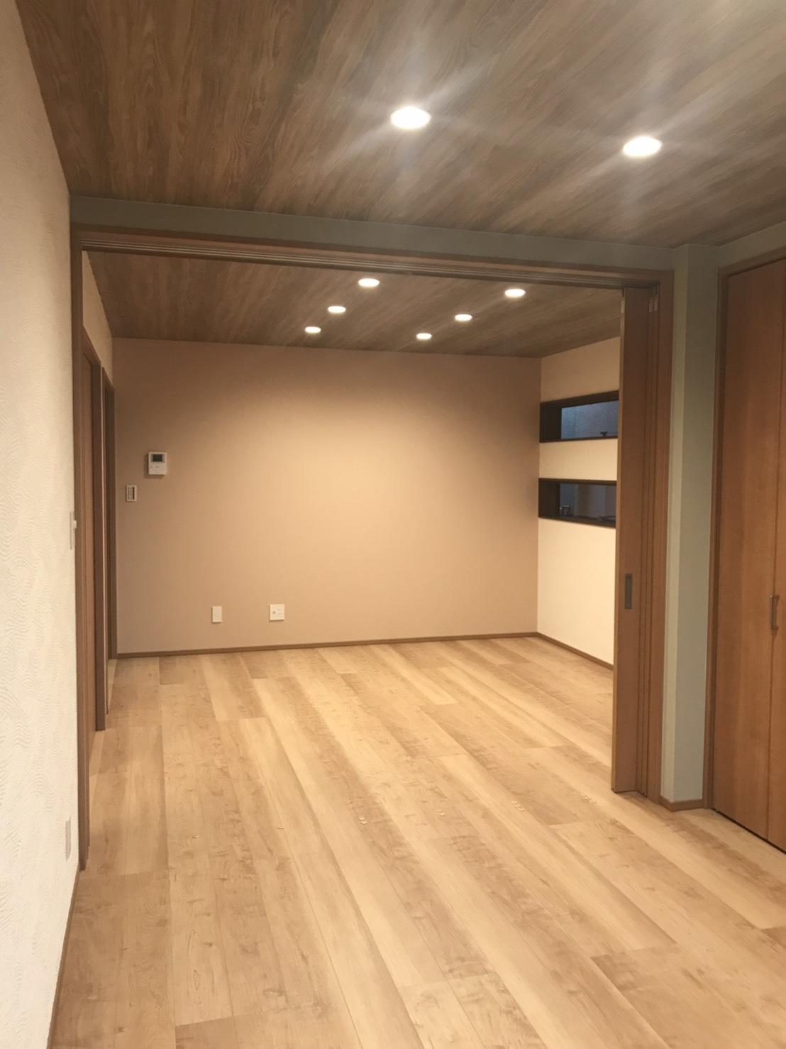 おじいちゃんおばあちゃんが住んでいた家で、数年空き家になっていたご自宅の横の家をお父様の為にリフォームしプレゼントしたいとの事でご来店いただきました。数年間空き家だったので、まずは家具家電撤去から始まりました。築35年~40年だったので断熱材はほとんどなく、壁・床・天井すべてに入れなおしました。和室だった部屋をフローリングに変え洋室にしました。二部屋の間仕切りは高さのある可動間仕切りを使い扉を開けたときは大きな広い部屋になるようになりました。