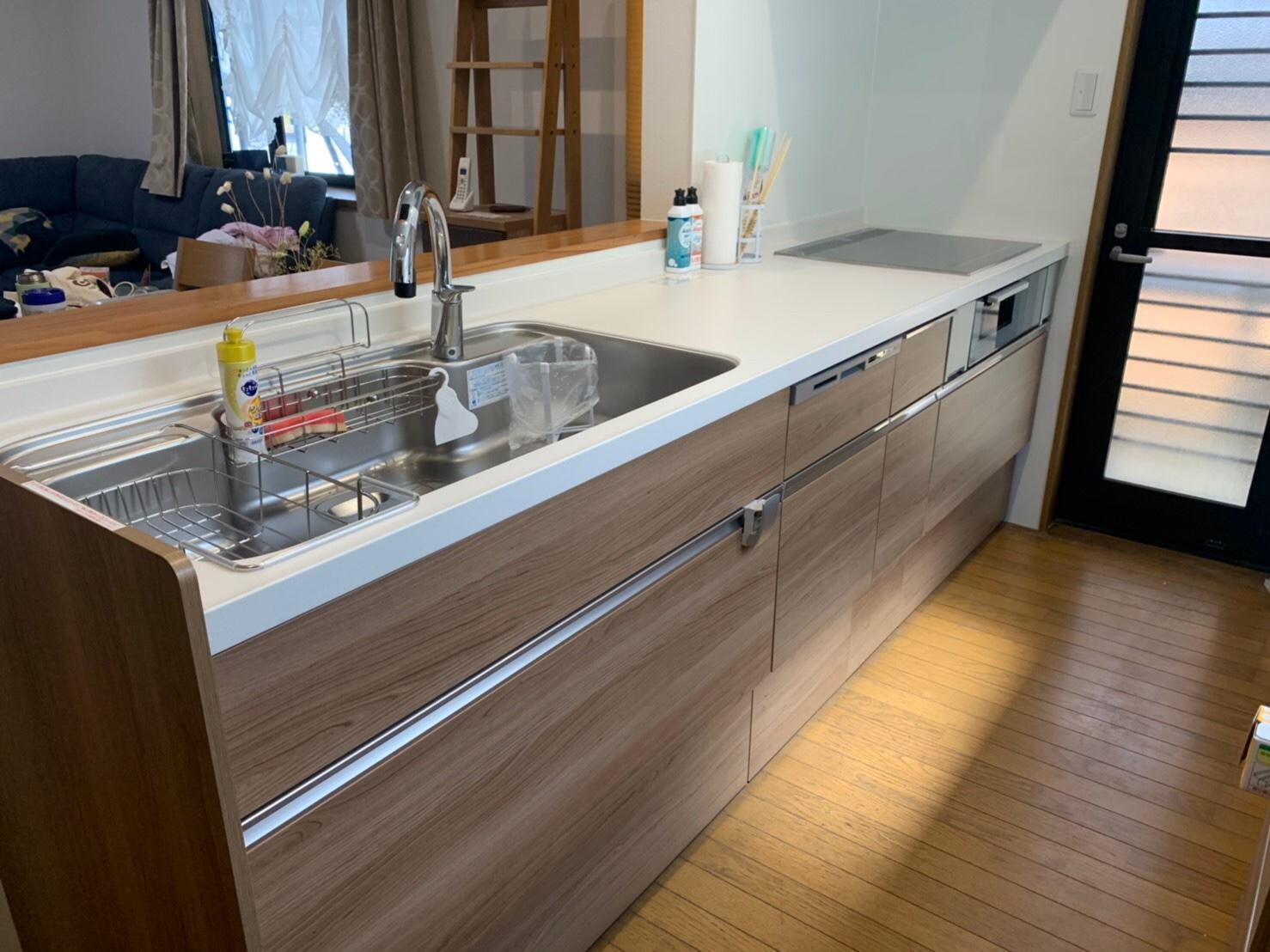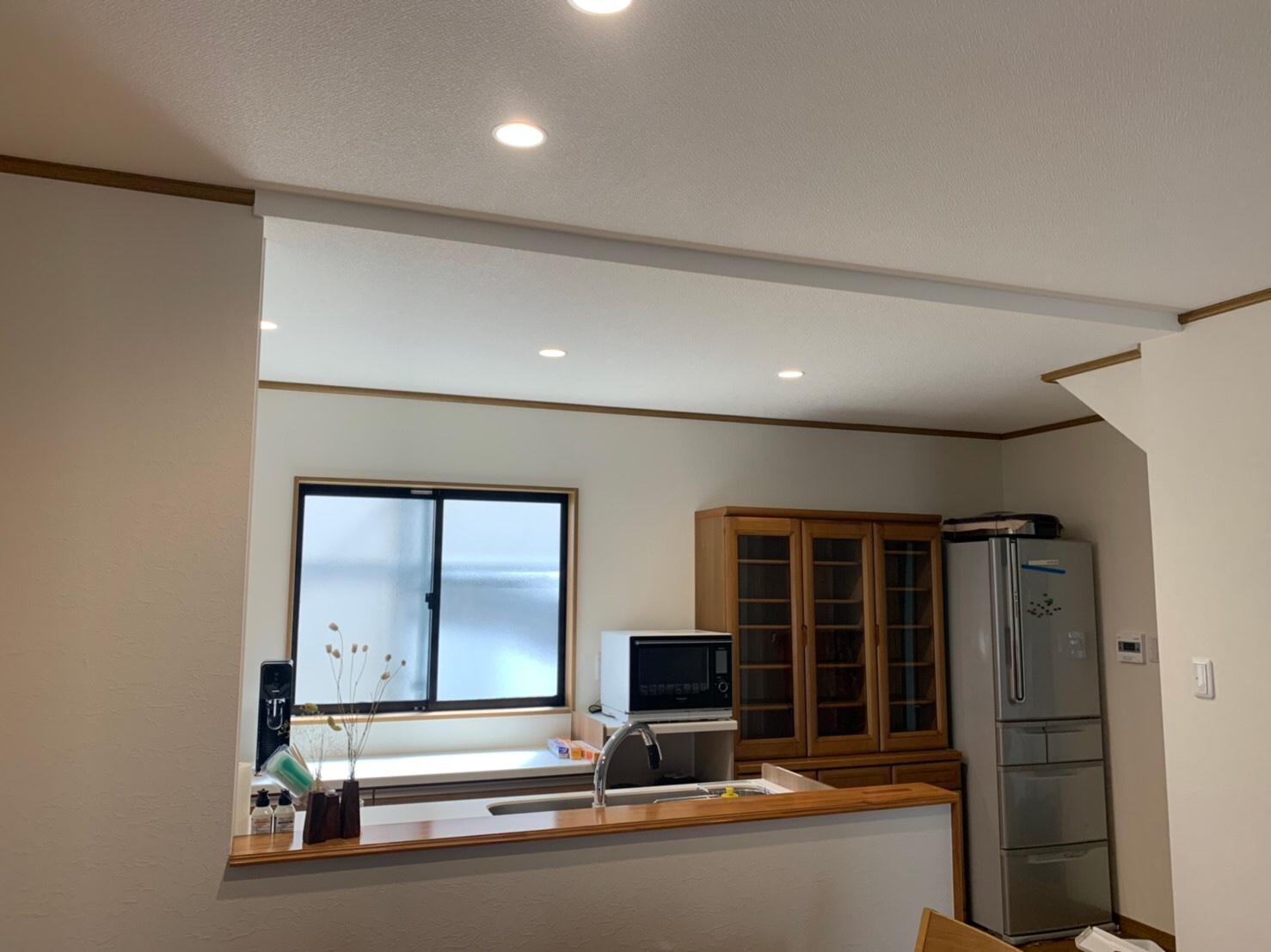 当初ご自宅の外壁を治し、浴室・洗面を新しくしたいという事でご依頼いただきました。打ち合わせをしていくと玄関ドアやキッチン・トイレ・給湯器も交換を考えているという事でしたのでまとめて水廻り一式取替え・外周部工事という事になりました。キッチンを工事することになったので一緒にLDKの壁紙の張替えをご提案させていただきました。その際に間取り変更せずに雰囲気を変えたいという事でキッチンの吊戸棚を取り、下がり壁をなくしました。そうすることで圧迫感がなくなりお部屋が広く感じられるようになりました。
