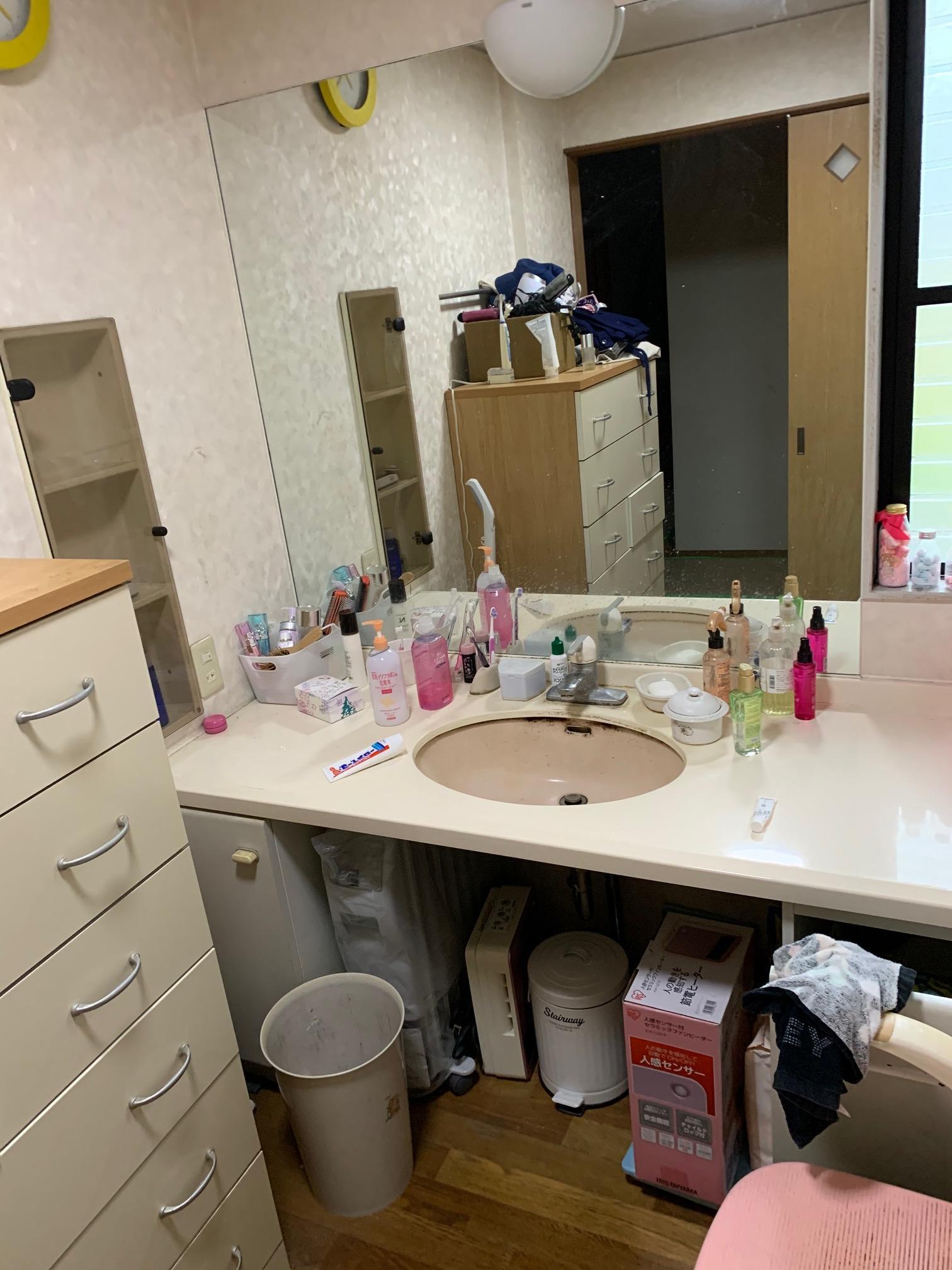家族が多くものがあふれていた洗面所。LIXILの『ルミシス』で高級感のあるすっきりした空間になりました。