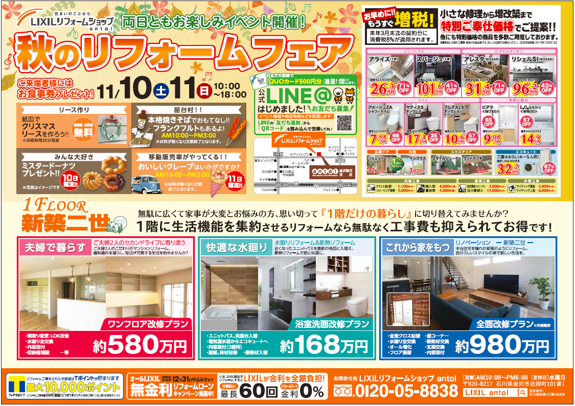 11月10日・11日の二日間、秋のリフォームフェアを開催いたします!