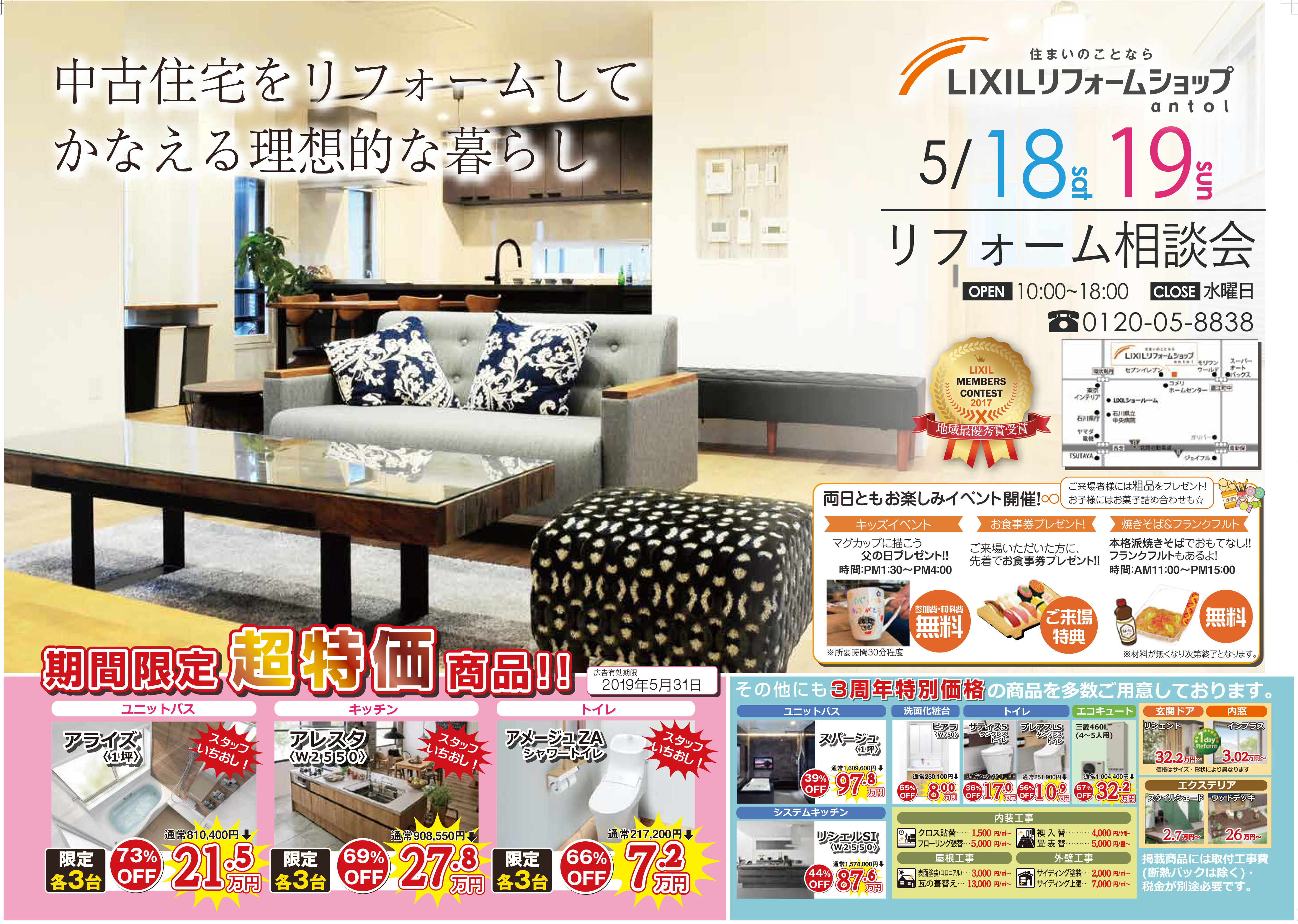 5月18日・19日の2日間『リフォーム相談会』と題してとってもお得なイベントを開催いたします‼