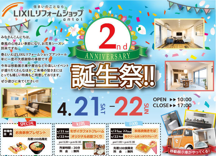 今回の誕生祭では移動展示車や屋台などのイベントも盛りだくさんです。