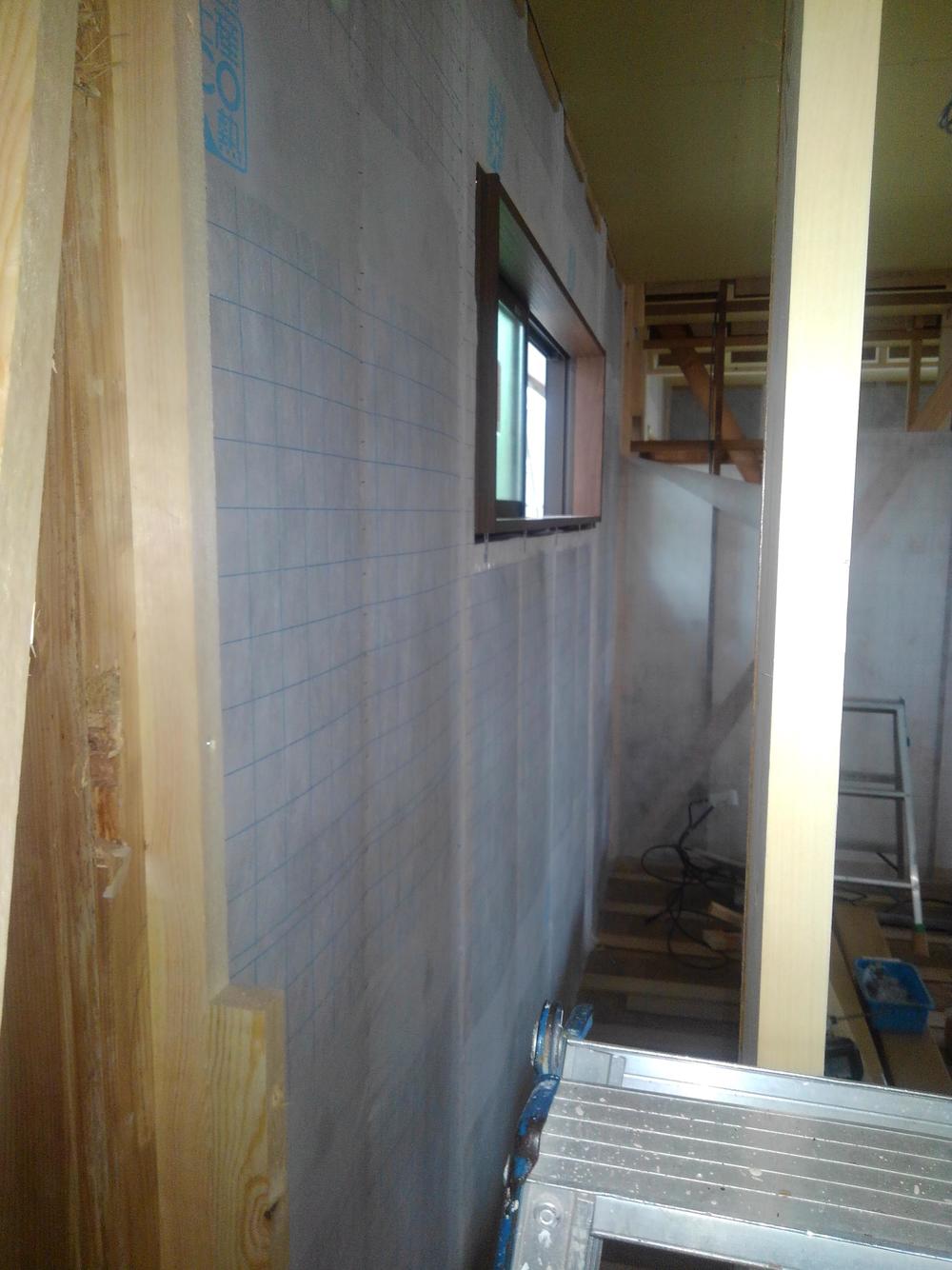 しかもこの家はのぼり傾斜の途中にある道路に面していて結構交通量も多い所ですので断熱・防音効果があるセルロースを提案させていただきました。