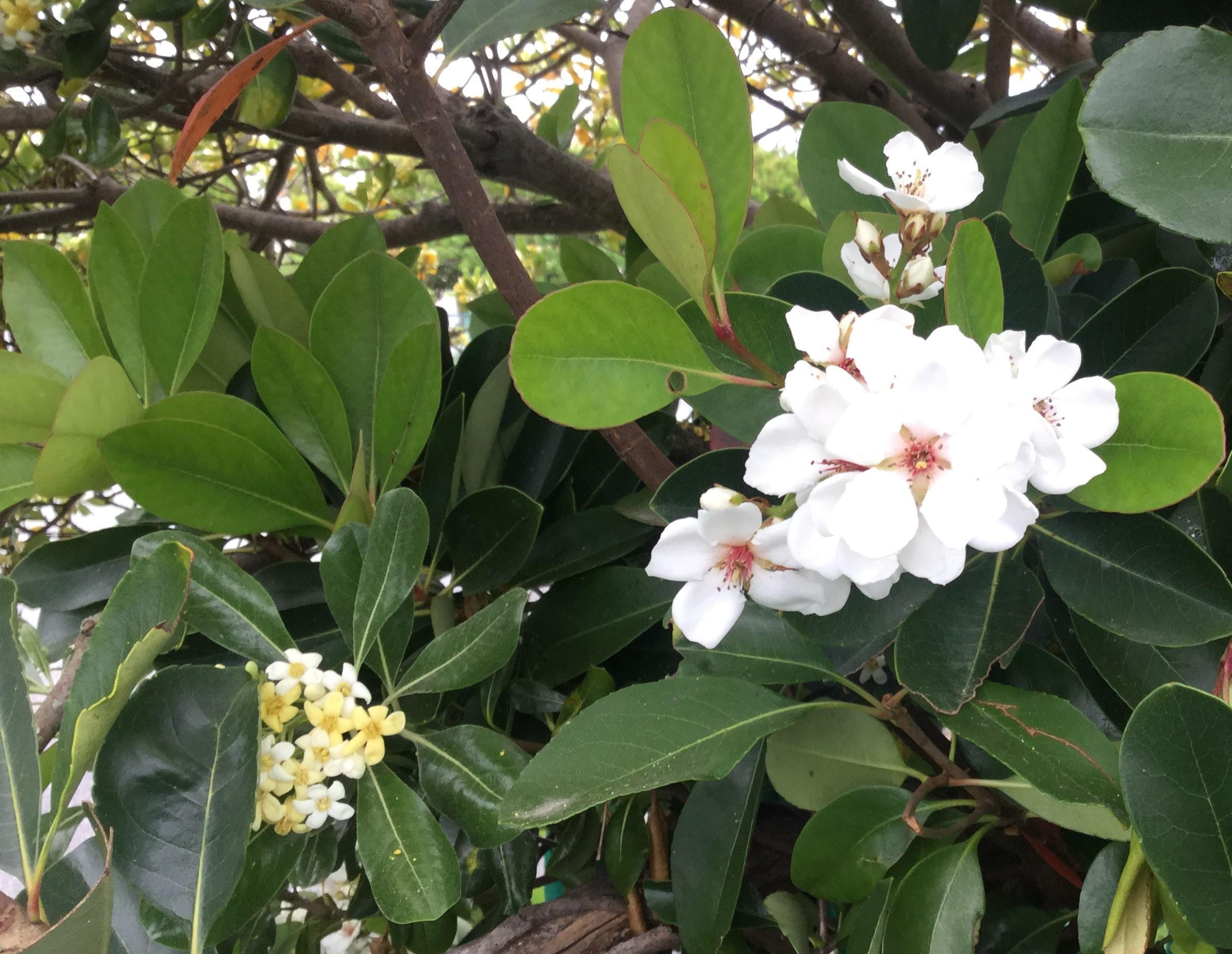 今日、下の写真の富士山が北斎の絵をイメージしたような感じでしたので一枚、足元には名もない樹木が花をつけていたので一枚撮りました。