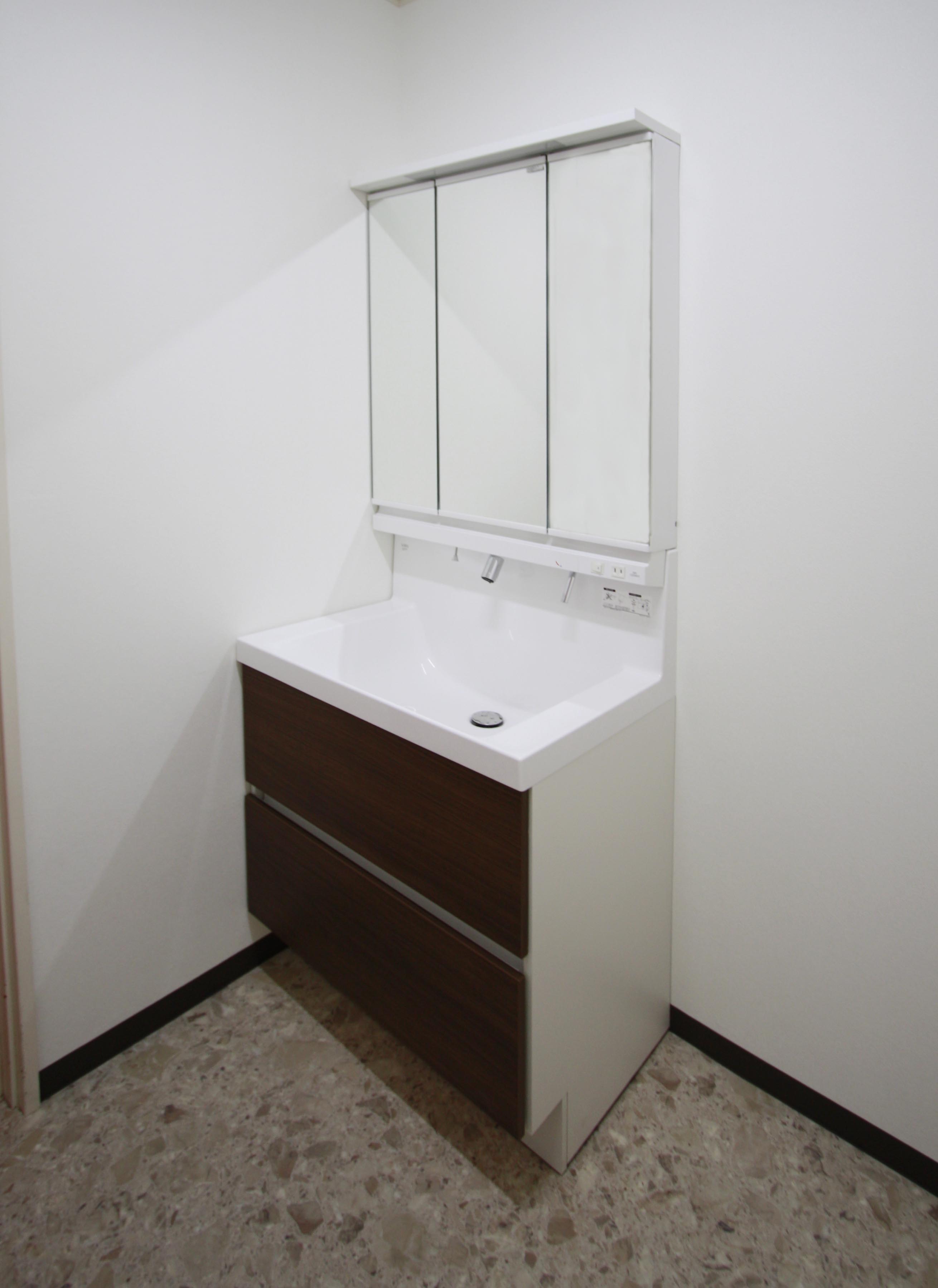 また、洗面台の奥行きはたったの50cmなので、動作スペースを広々確保できます。