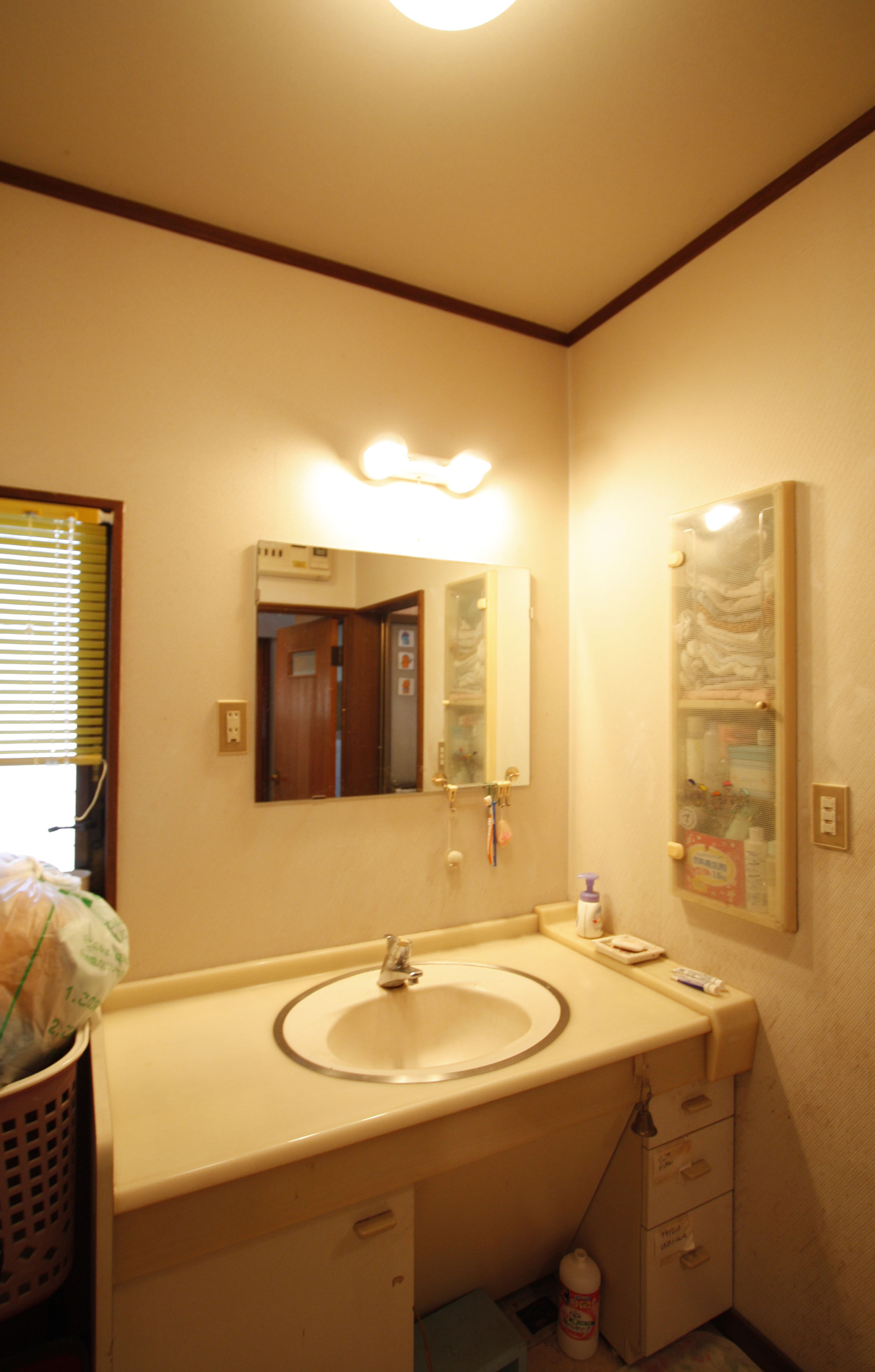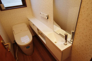 介護が必要な親との同居をきっかけに、今回リフォームを行ったT様。1階すべての床の段差解消を行いました。ただ介護の為の機能的な面だけでなくこれからも長く住むために、自分たちのしたい生活に合わせた機器を選定されました。水廻りはこだわりの空間となっており、リラックスできるすっきりとして綺麗なホテル暮らしのような空間となりました。洗面化粧台は丸いボールやミラーライトが付いていたりと高級感のある仕様になっています。