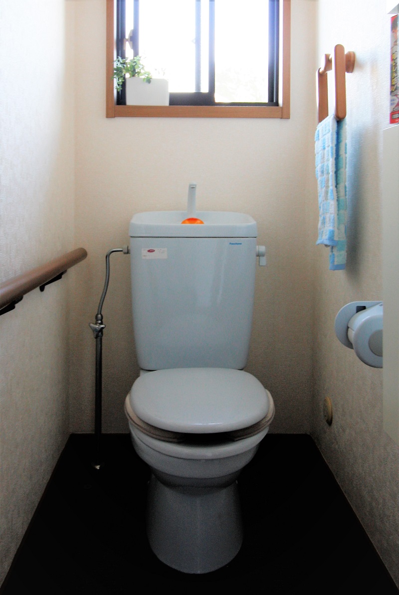 機能面だけではなくデザイン性も気に入っていただき、プレアスHSを採用致しました。(手洗い部分からはシャワーで水が出てくるタイプです。) 今回、床や壁は綺麗だったため張替えは行いませんでしたが、トイレと合わせ紙巻器とタオル掛けを交換したことで雰囲気が随分変わりました。 トイレ本体のみの交換工事でしたので、施工時間も半日程度で終了し、すぐご使用いただけました。