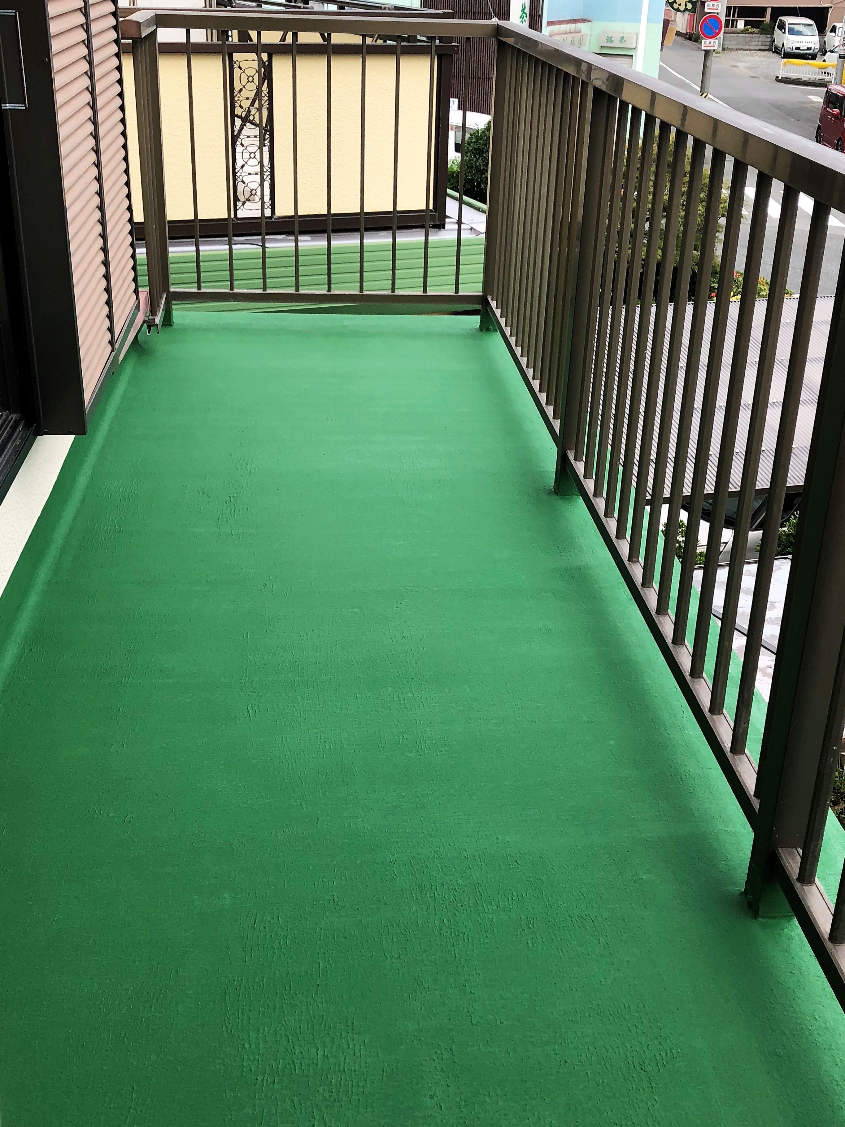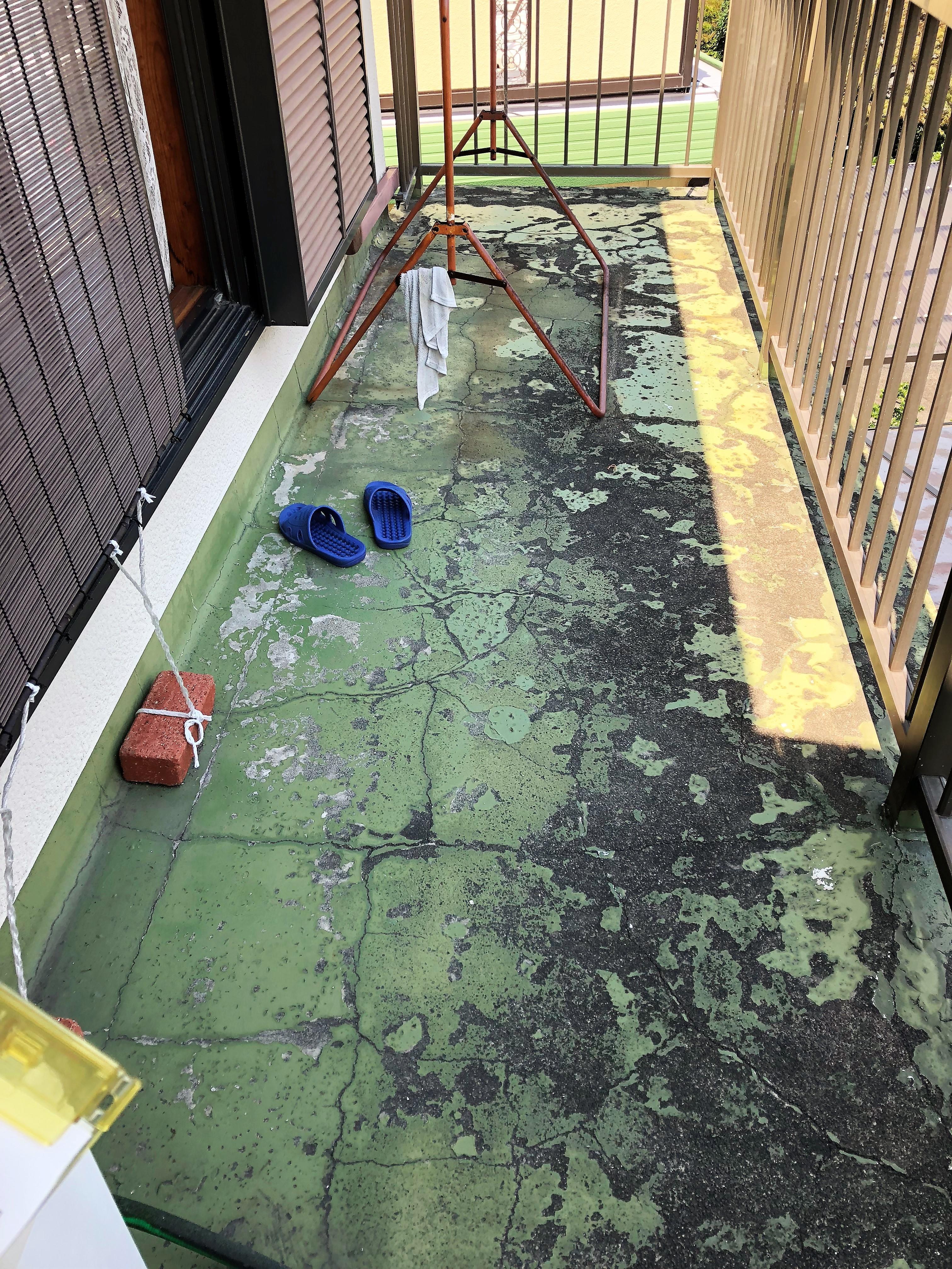 クラック等劣化が見られたベランダの補修を行いました。クラックを補修し、立上り部までしっかりウレタン防水を施工しました。