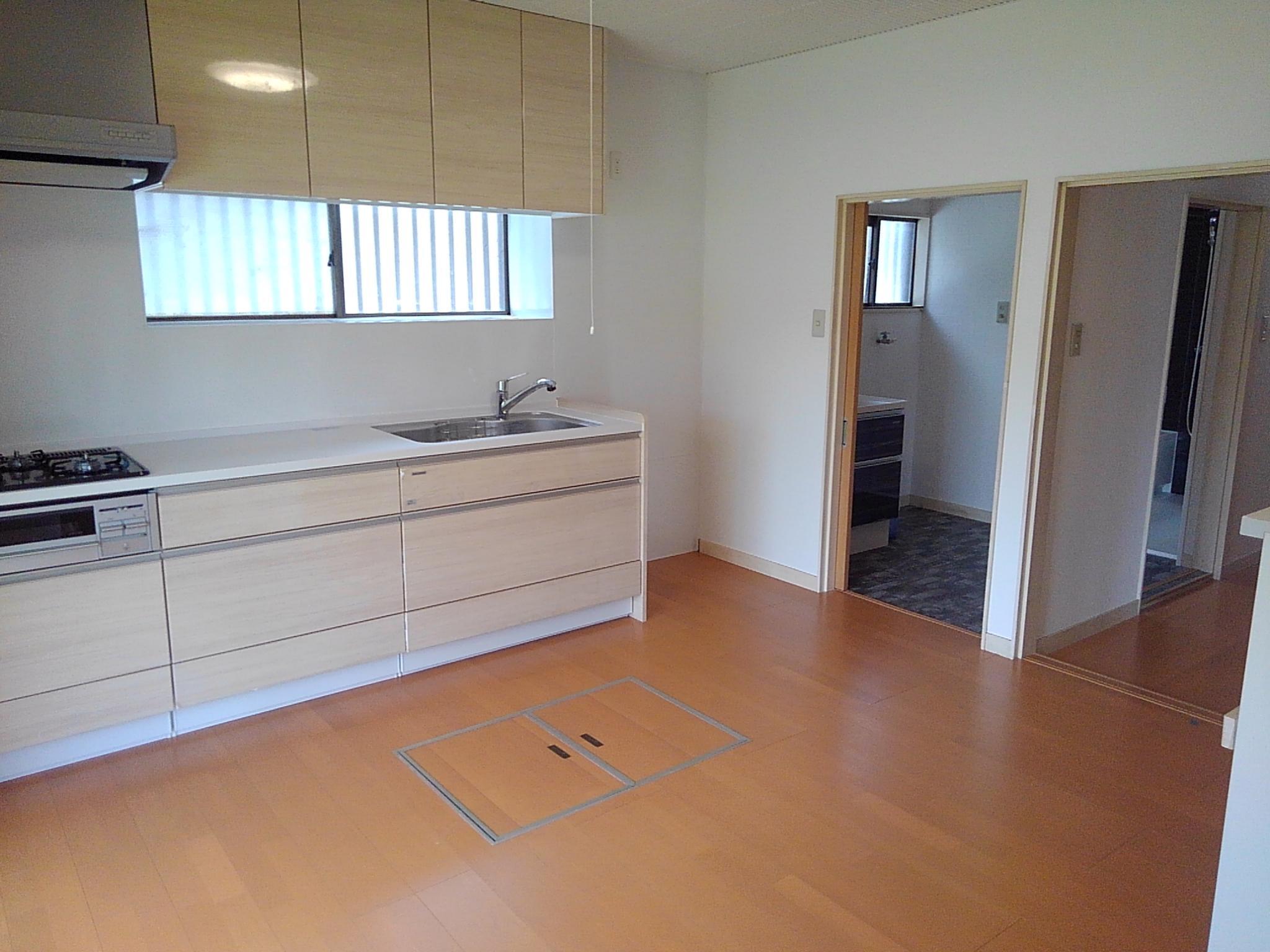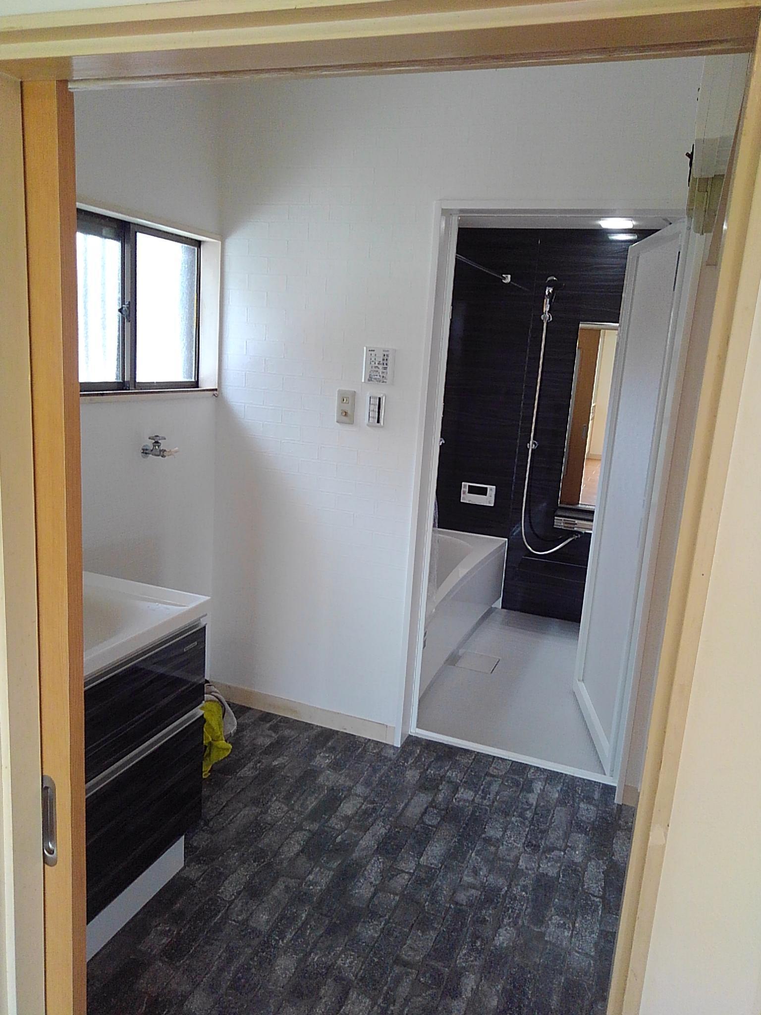 もともと、住む人の導線を考えたDK-洗面-浴室の間取りでしたので建具・器具の交換、クロス・クッションフロアの張替で使いやすく素敵にリニューアルできました。浴室は断熱仕様(浴室換気暖房機共) ボイラーはエコジョーズ設置