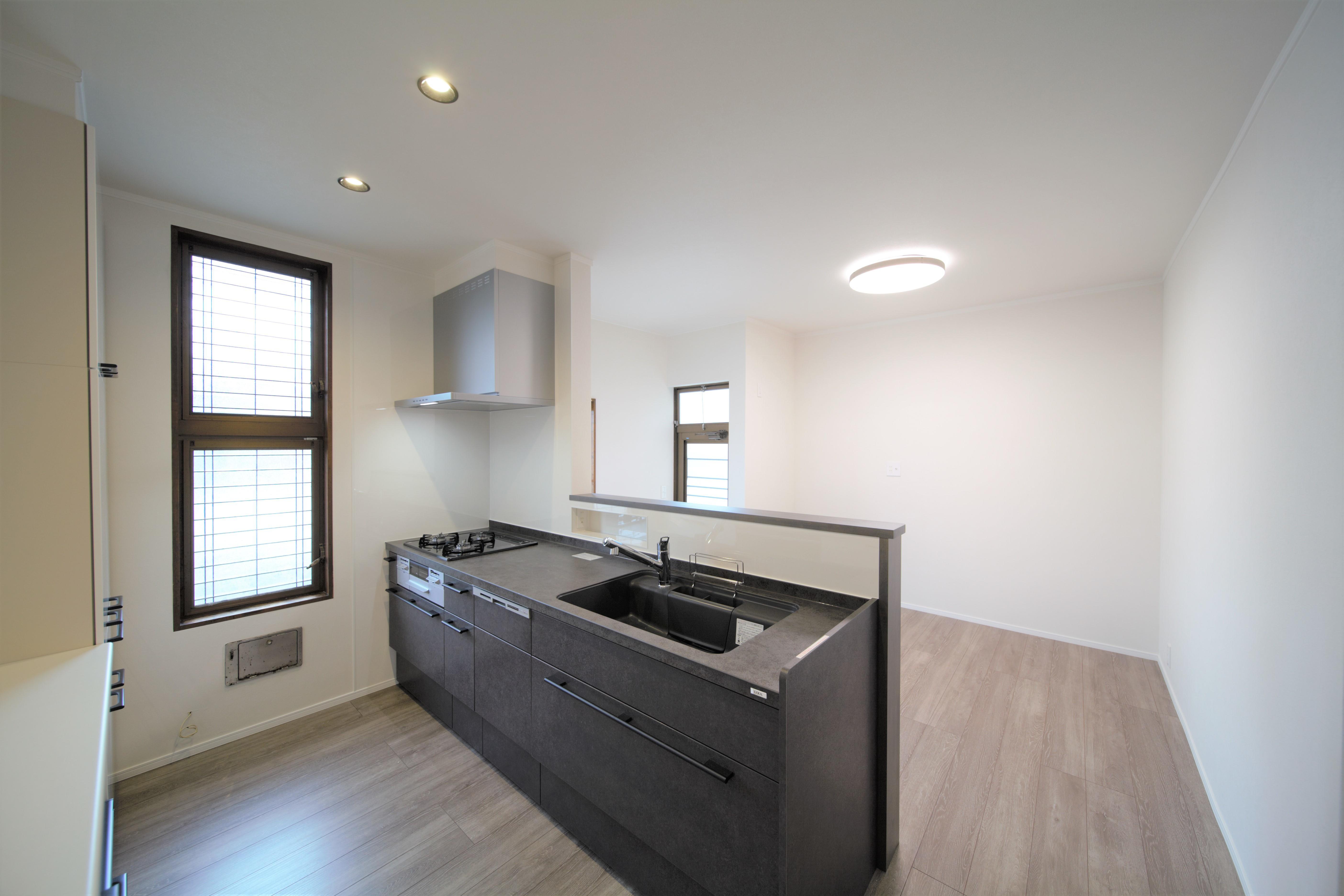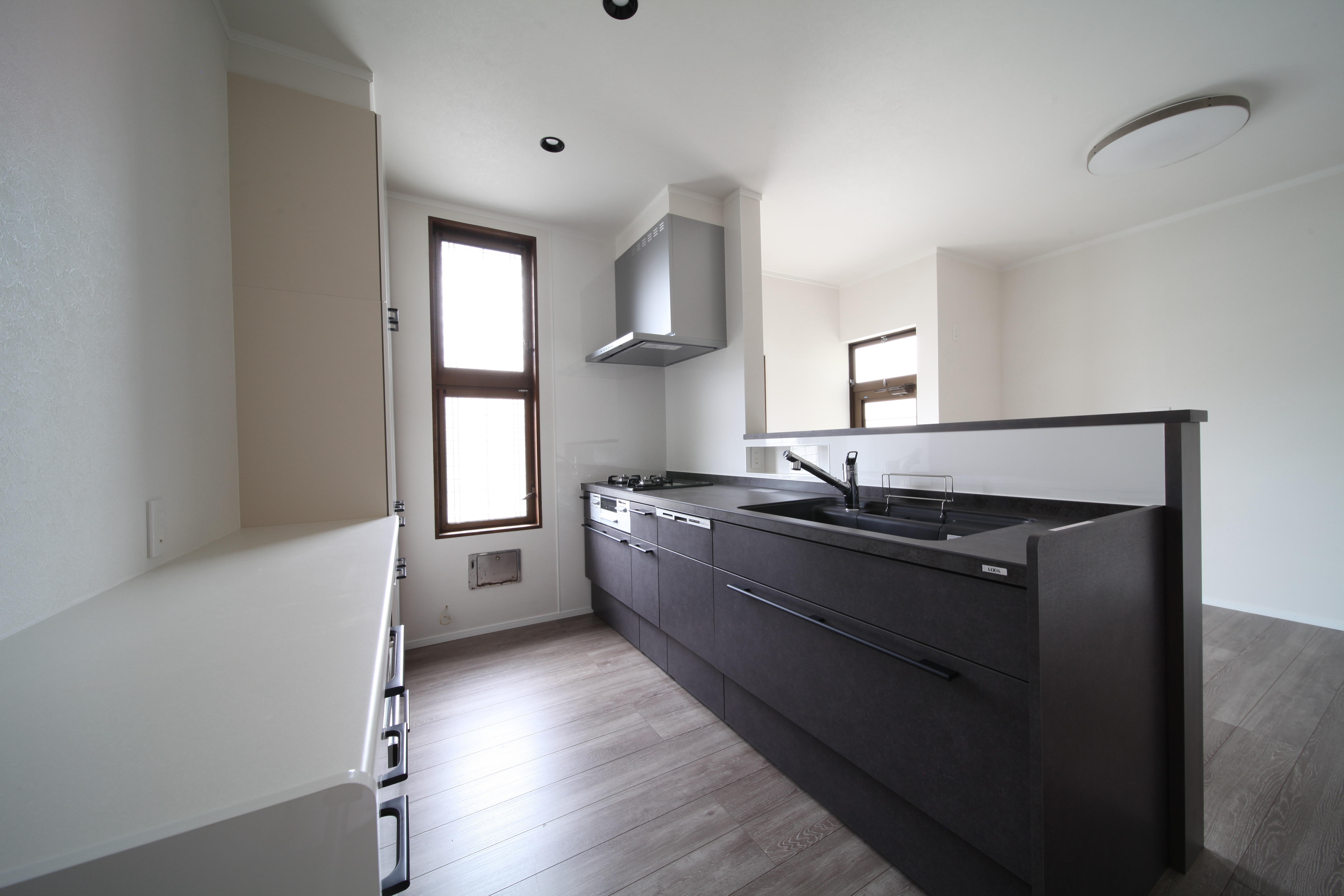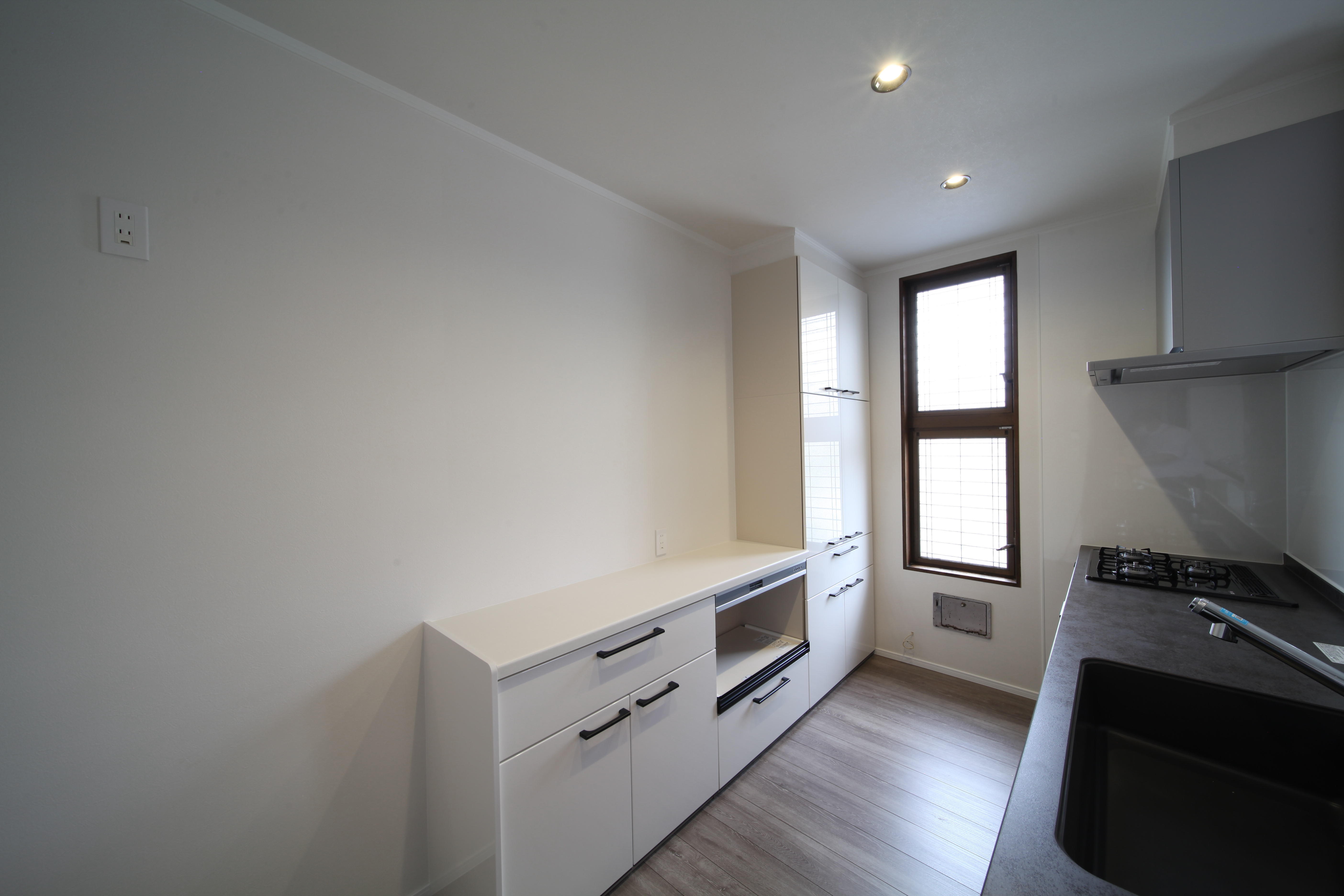 キッチンを対面式に変更し、背面壁側にカップボードを取付けて料理や片付けがスムーズになりました。