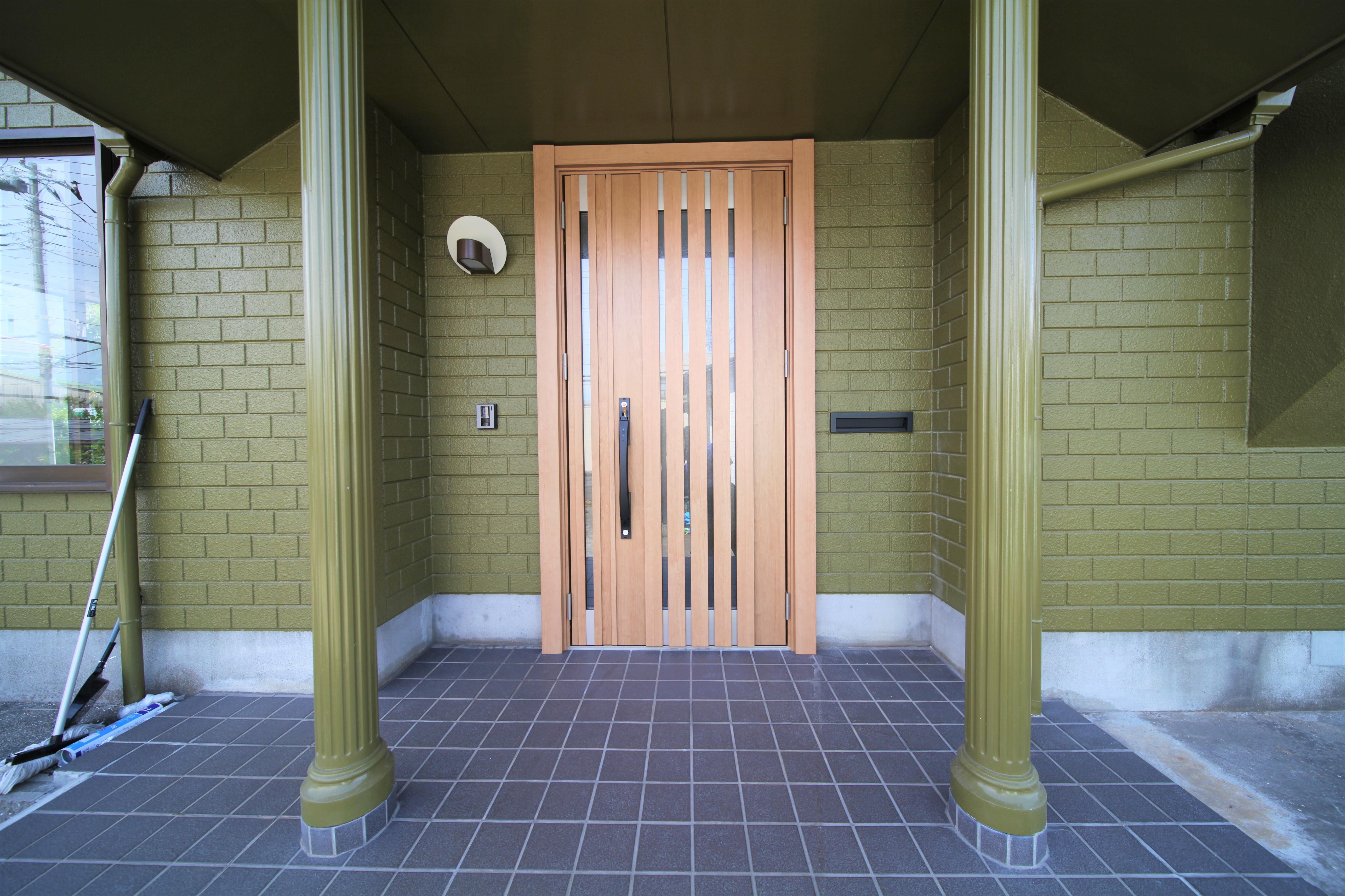 玄関ドアをリクシルリシェントでリニューアルしました。 玄関ドアは表面の造りが立体的で豪華さがあり断熱の効果も見込めます。家の中に入ると一転モノトーン調の洗練された壁床建具のため 玄関の少しふわっとした色調が玄関ホールに温かさをもたらします。