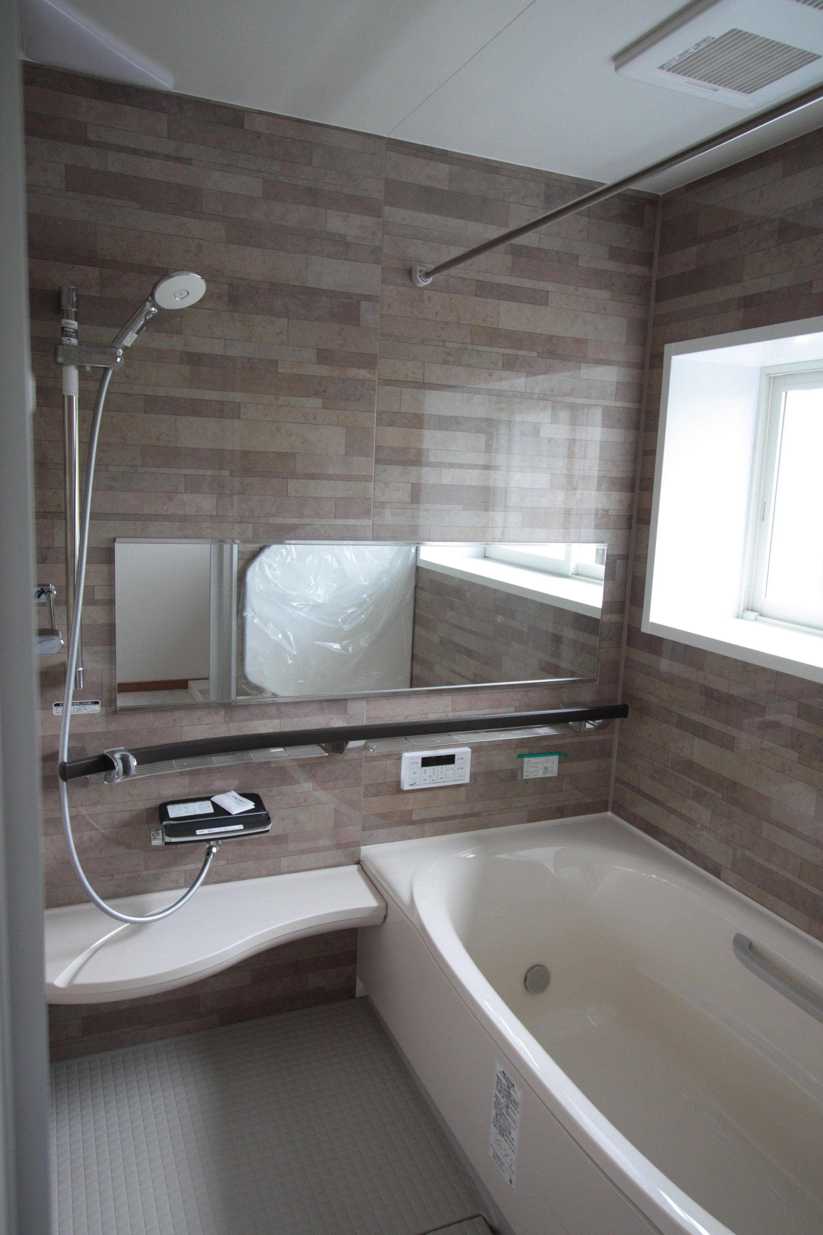 浴室-LIXILアライズK1.0坪タイプ2世帯へのリノベーションで難しいのは2世帯共に使いやすい家になるようにプランする事です。1階トイレは親世帯寄りに、洗面、浴室は親子2世帯の真ん中に配置して使いやすい水廻りができました。浴室は断熱仕様+内窓+換気暖房機付冬暖かい浴室になりました。