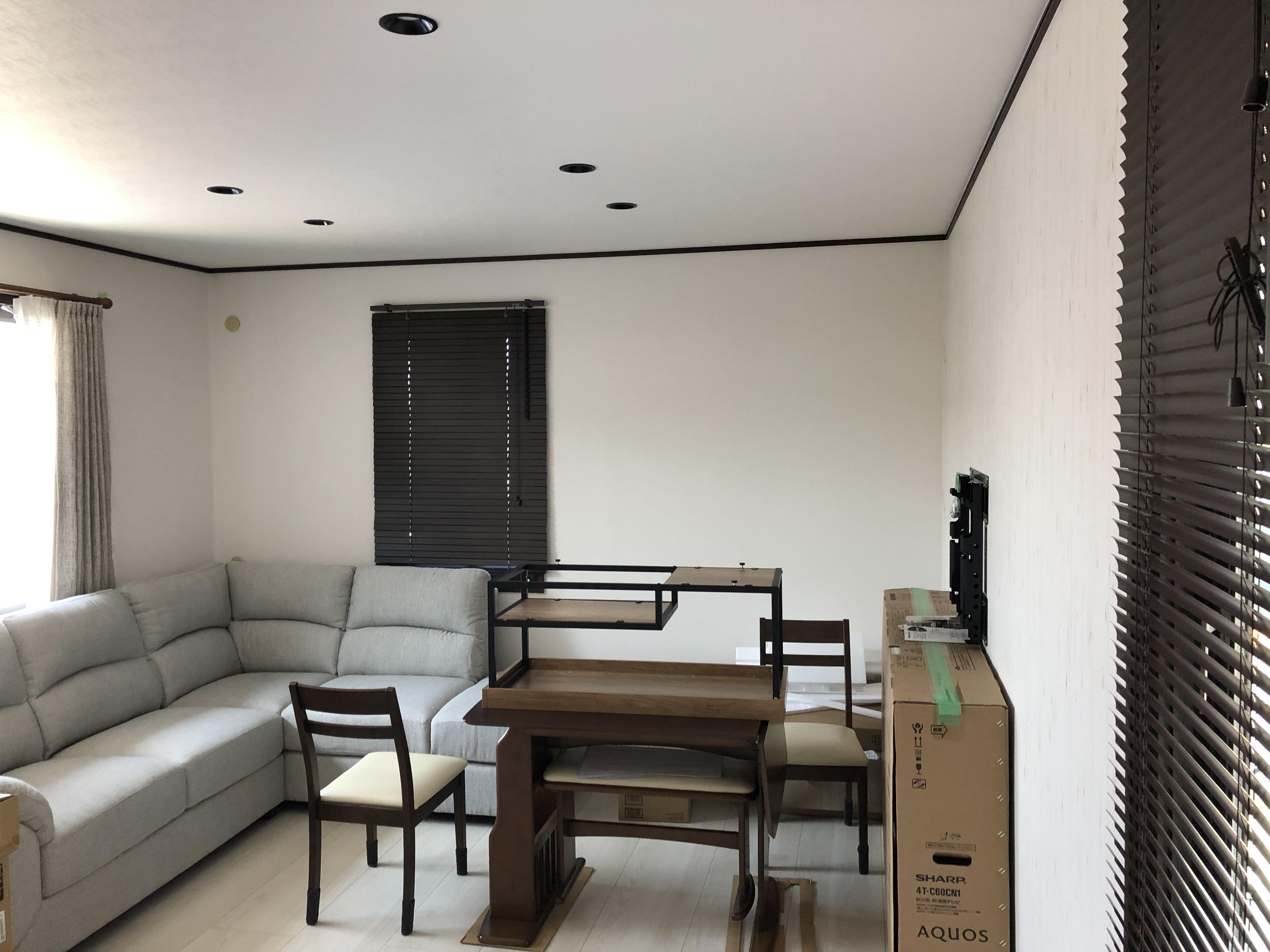リビングスペースに棚とテレビが取付けできるように壁を改造しました。