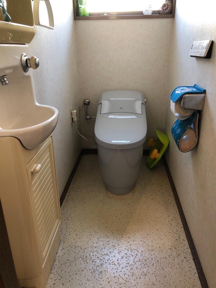 シャワー付きトイレからの交換、節水型タンク自動便器洗浄タイプのLIXILプレアストイレに交換をしていただきました。