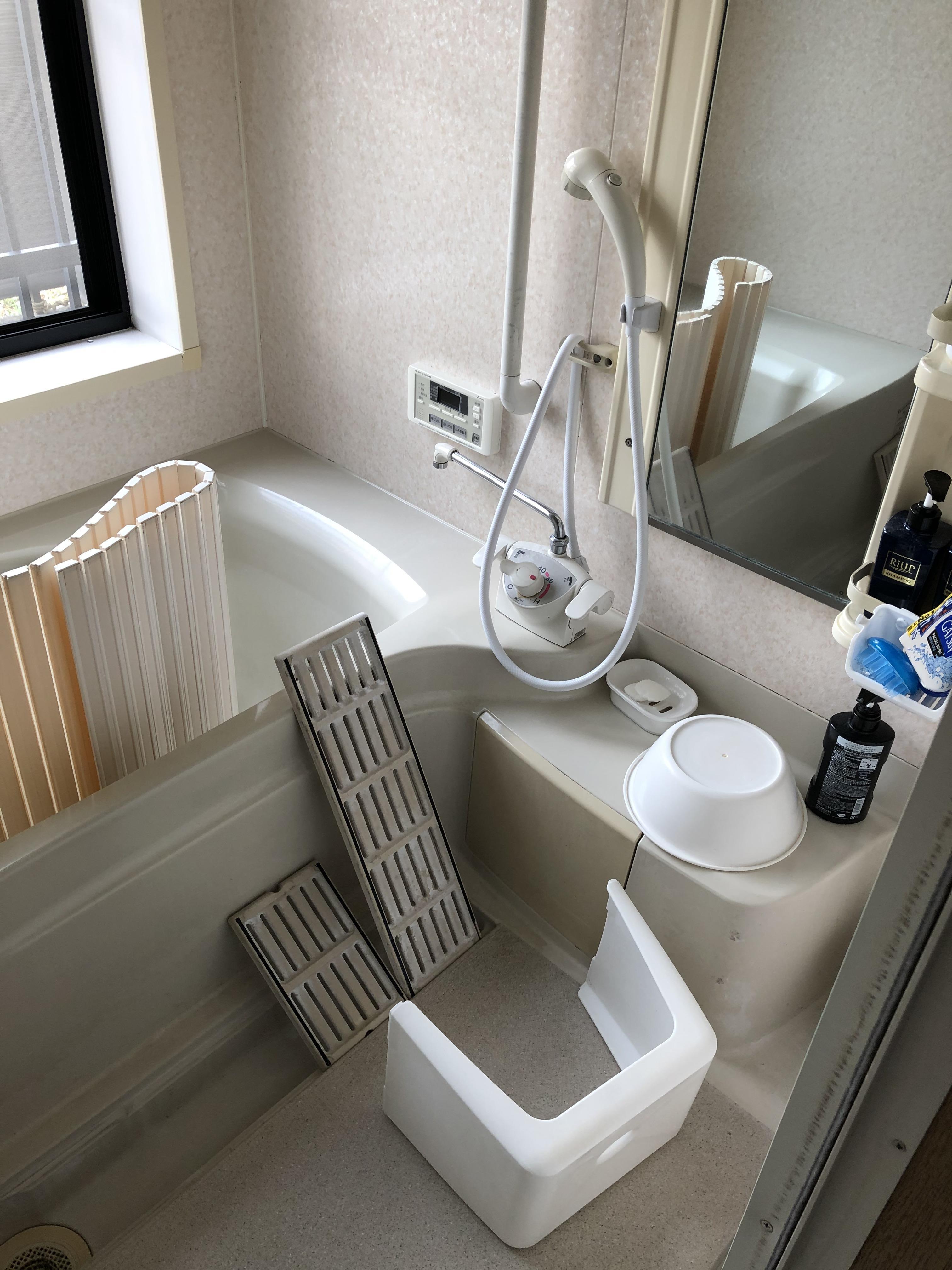 既存ユニットバス 1.0坪 入口片開き戸 換気扇 をLIXILアライズKタイプ 入口引き戸 換気暖房機 断熱あたたかパック 内窓インプラスに変更しました。