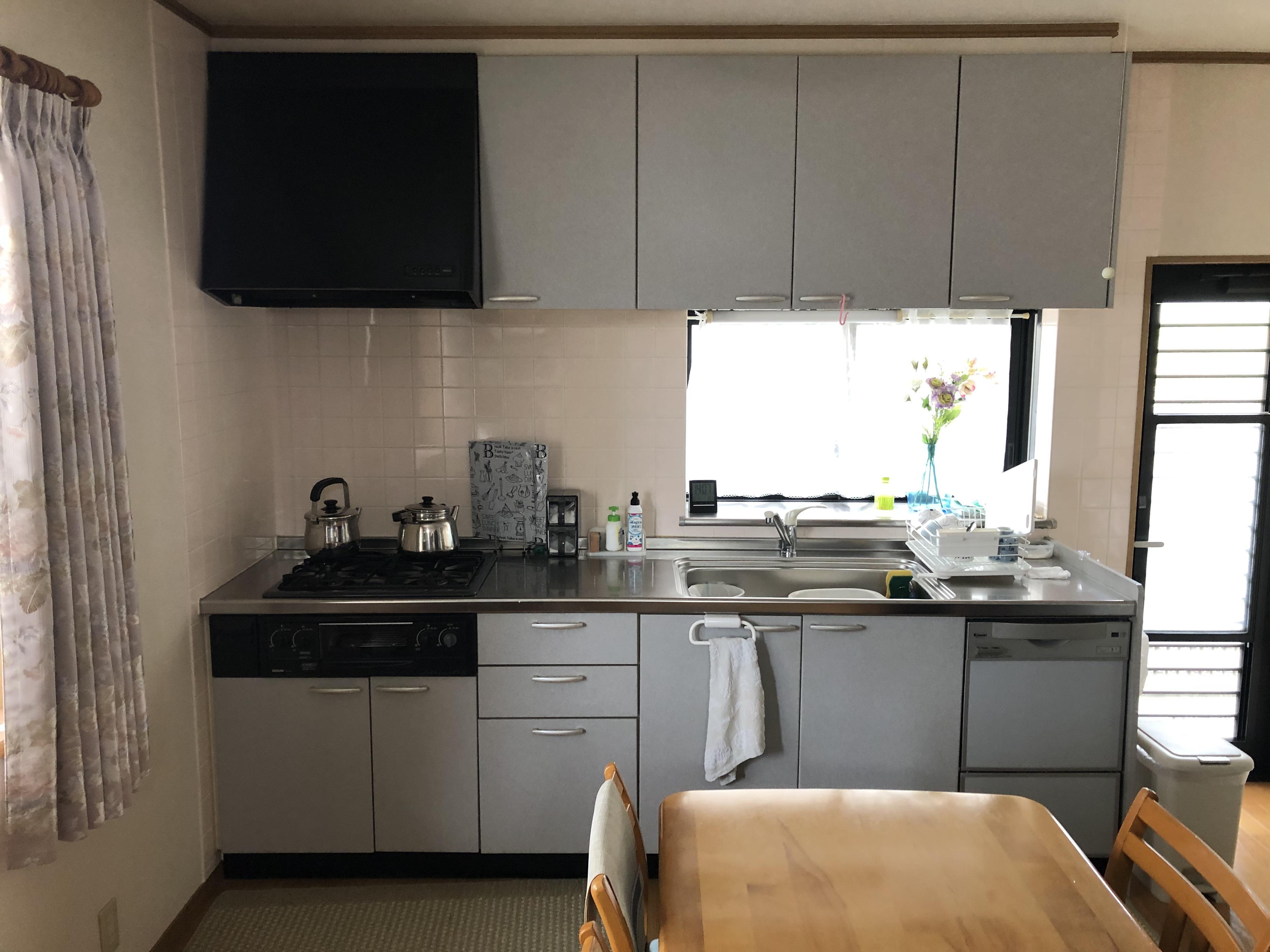 キッチンサイズはそのままですが既存のキッチンよりも収納力はアップ、お掃除楽なレンジフードに変えました。