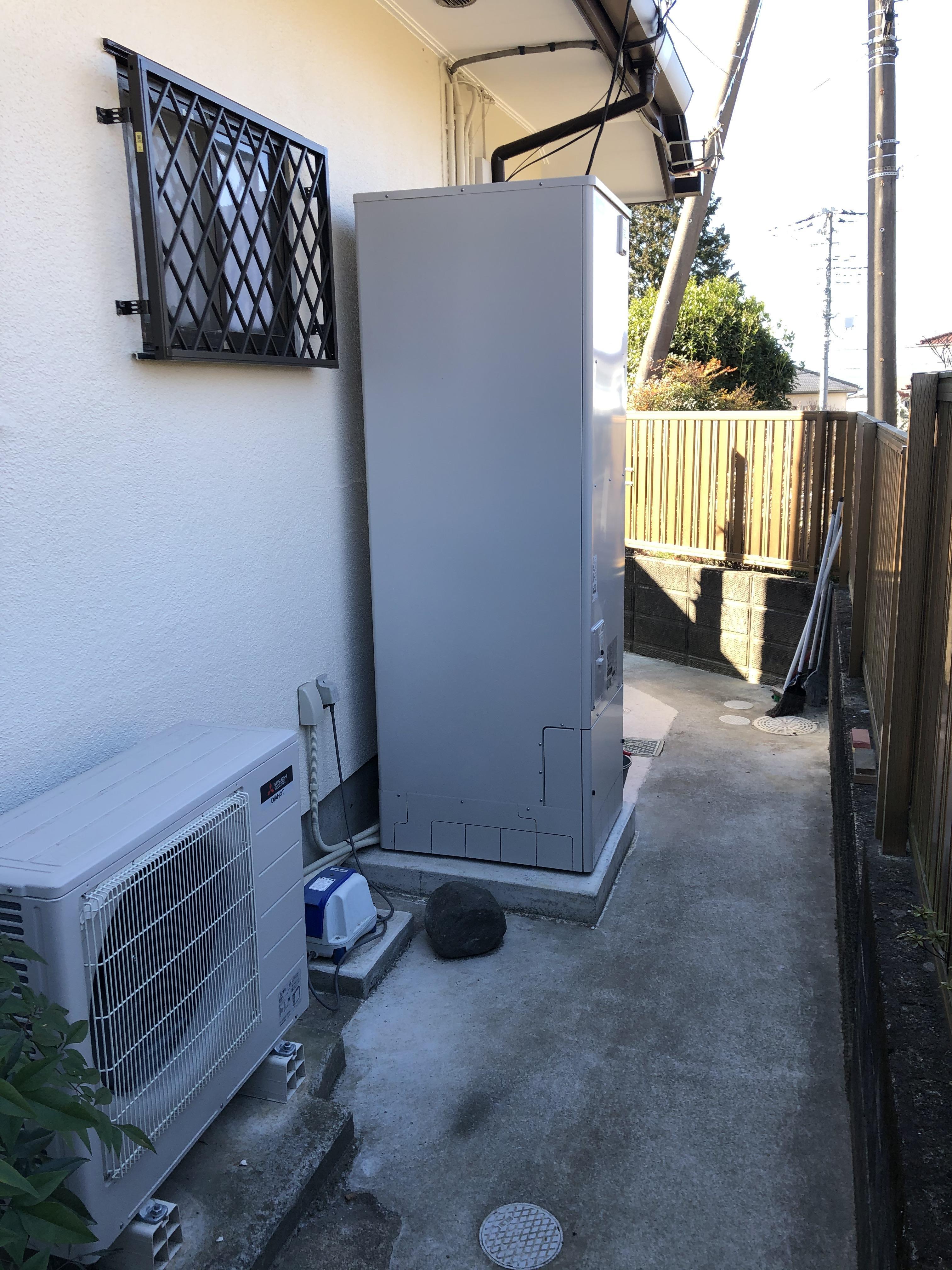 住宅のオール電化で給湯器もガスから電気に変更です。 マイクロバブルで入浴後もぽかぽかと暖かく、追い焚き配管の汚れの対策機能付きです。 残り湯の熱も回収して再利用できる機能があり、長時間お湯の綺麗が続くと言う事で身体に優しいエコな給湯器です。