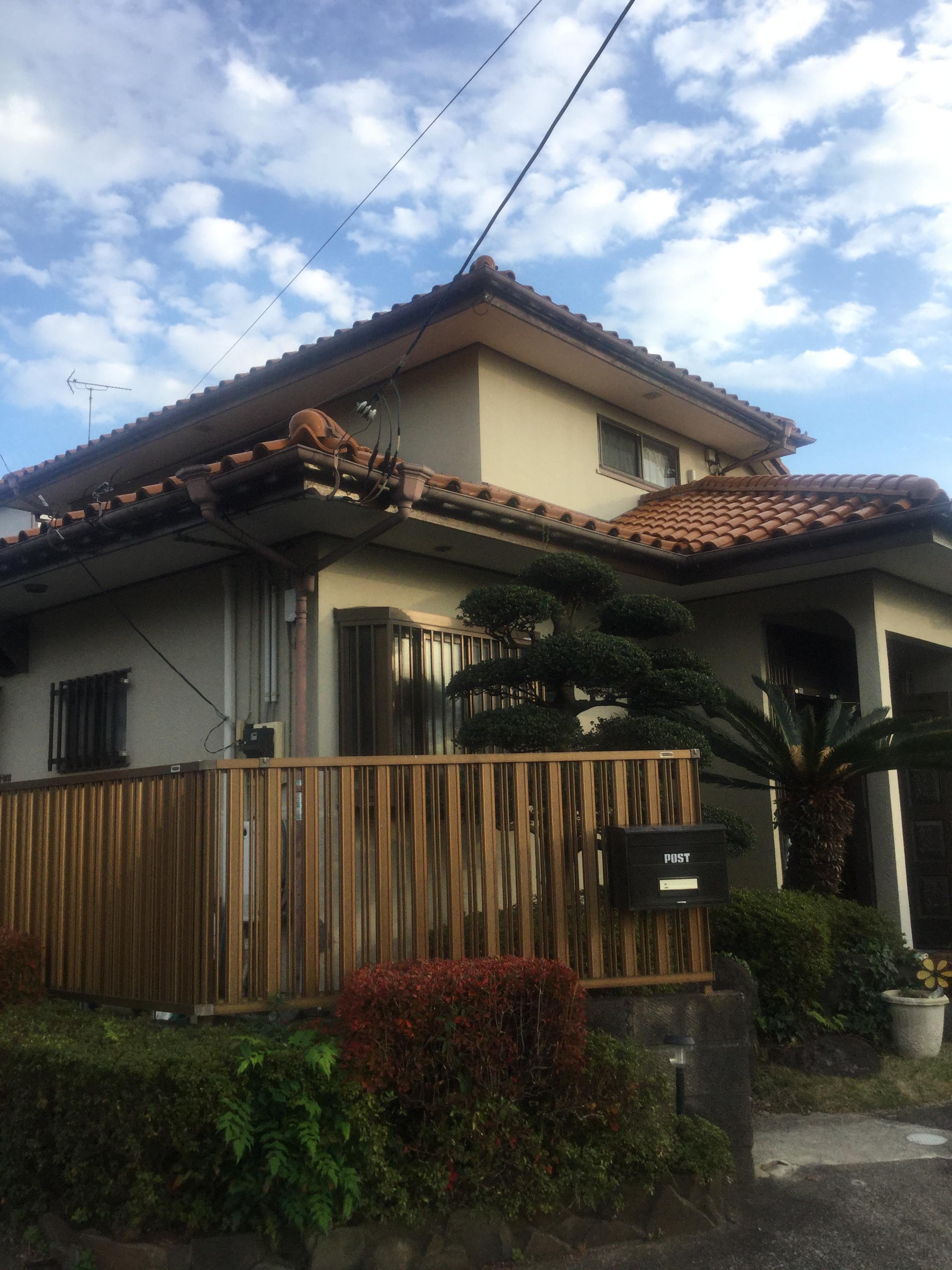 耐震を考え洋瓦葺屋根をガルバリウム鋼板葺きに変更しました。 雨樋も屋根の大きさに合わせ大き目な物に交換です