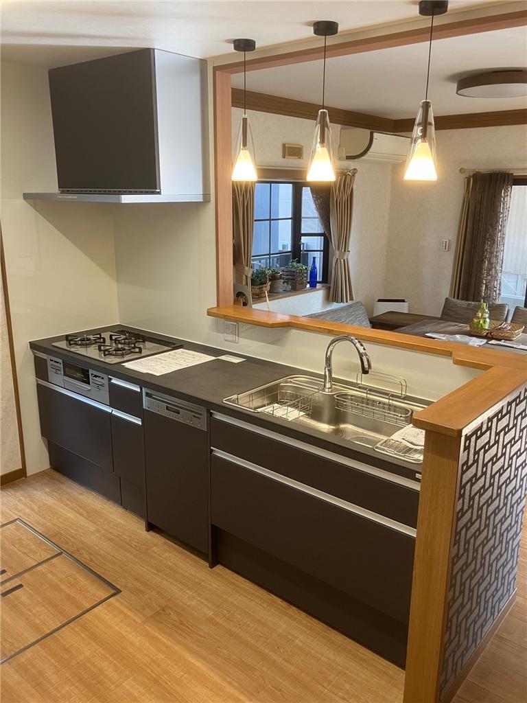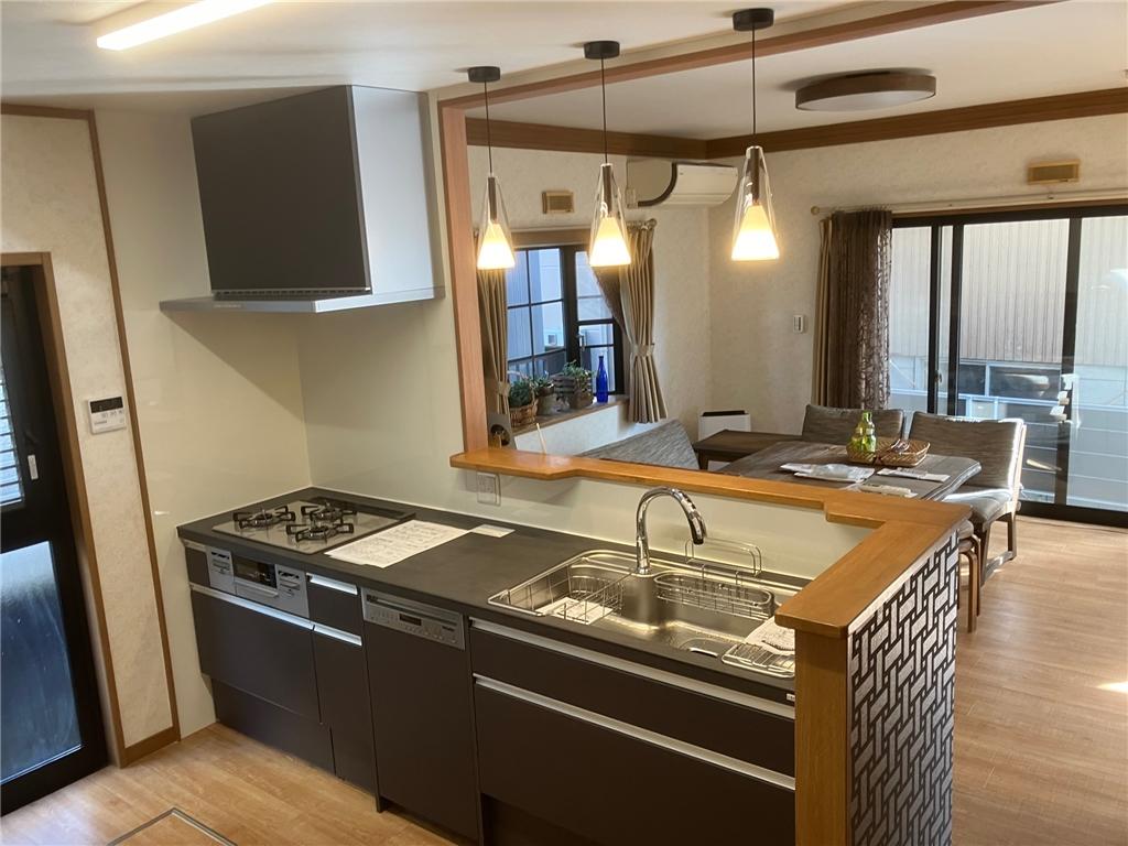 以前からお付き合いのあるお客様で奥様はとても気さくでご自身の感覚をとても大切にしている方です。 この工事の前に玄関リシェント工事もやっていただきました。 今回も奥様の第一希望は明るいオープンなキッチンでした。 吊戸棚を撤去してLDKの内装を一新していただきました。 とても明るくグレードが上がった印象になりました。ありがとうございました。