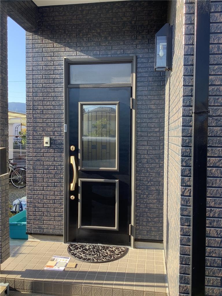 OBのお客様からの紹介で工事を請け負わせていただきました。 玄関ドアの調子が悪いため思い切ってタッチレスキーの機能込みとなりました。 ランマ付きのドアが一枚ドアになって家の印象が変わりました。 お施主様の喜びが伝わってきてこちらもうれしく思いました。 ありがとうございました