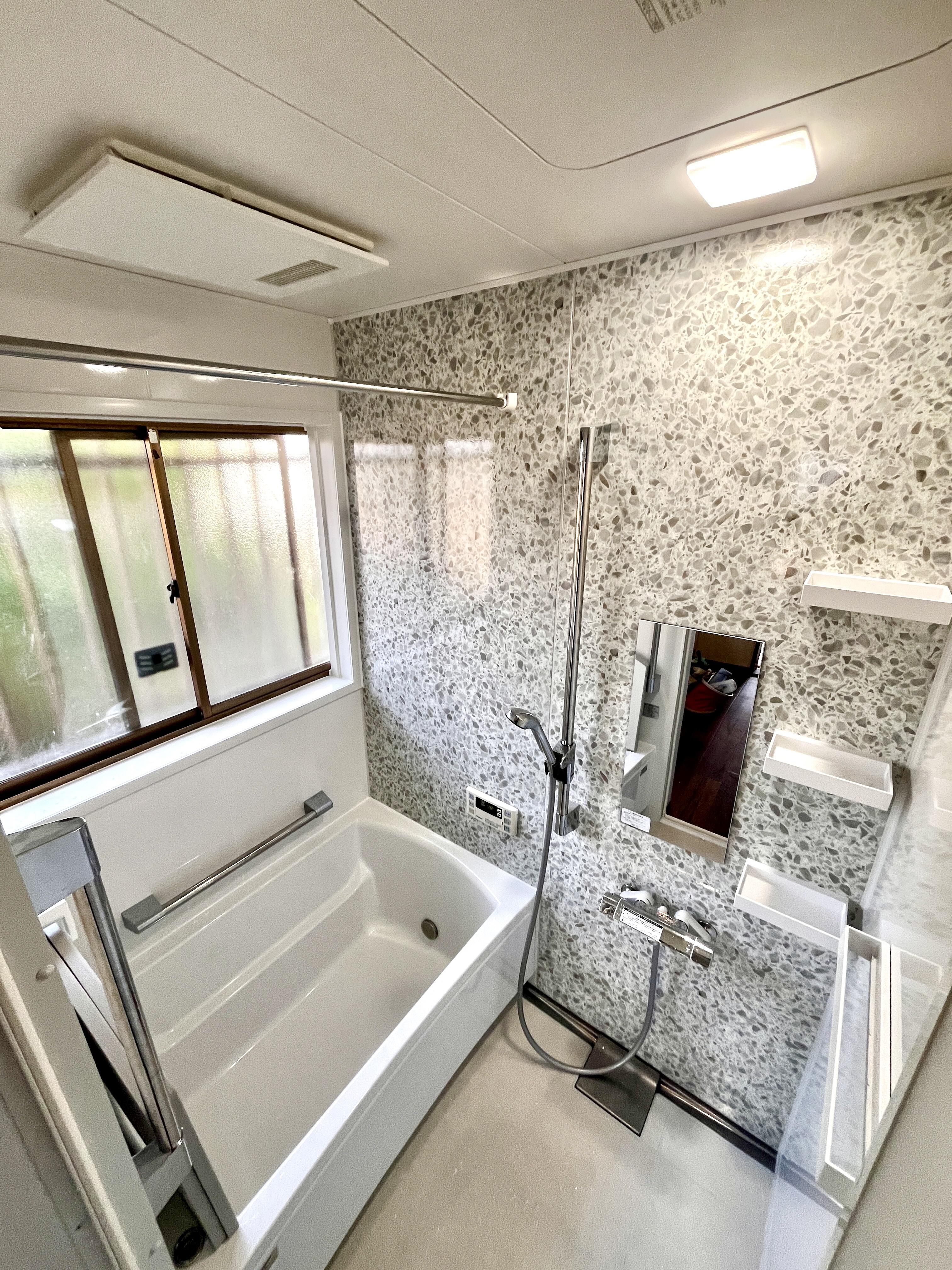 築47年新築時に施工されたままの浴室をLIXILリデアUB1616にリフォーム 換気暖房機・あたたかパック(断熱仕様) 脱衣室入口 浴室枠施工(樹脂製) 内窓(インプラス)