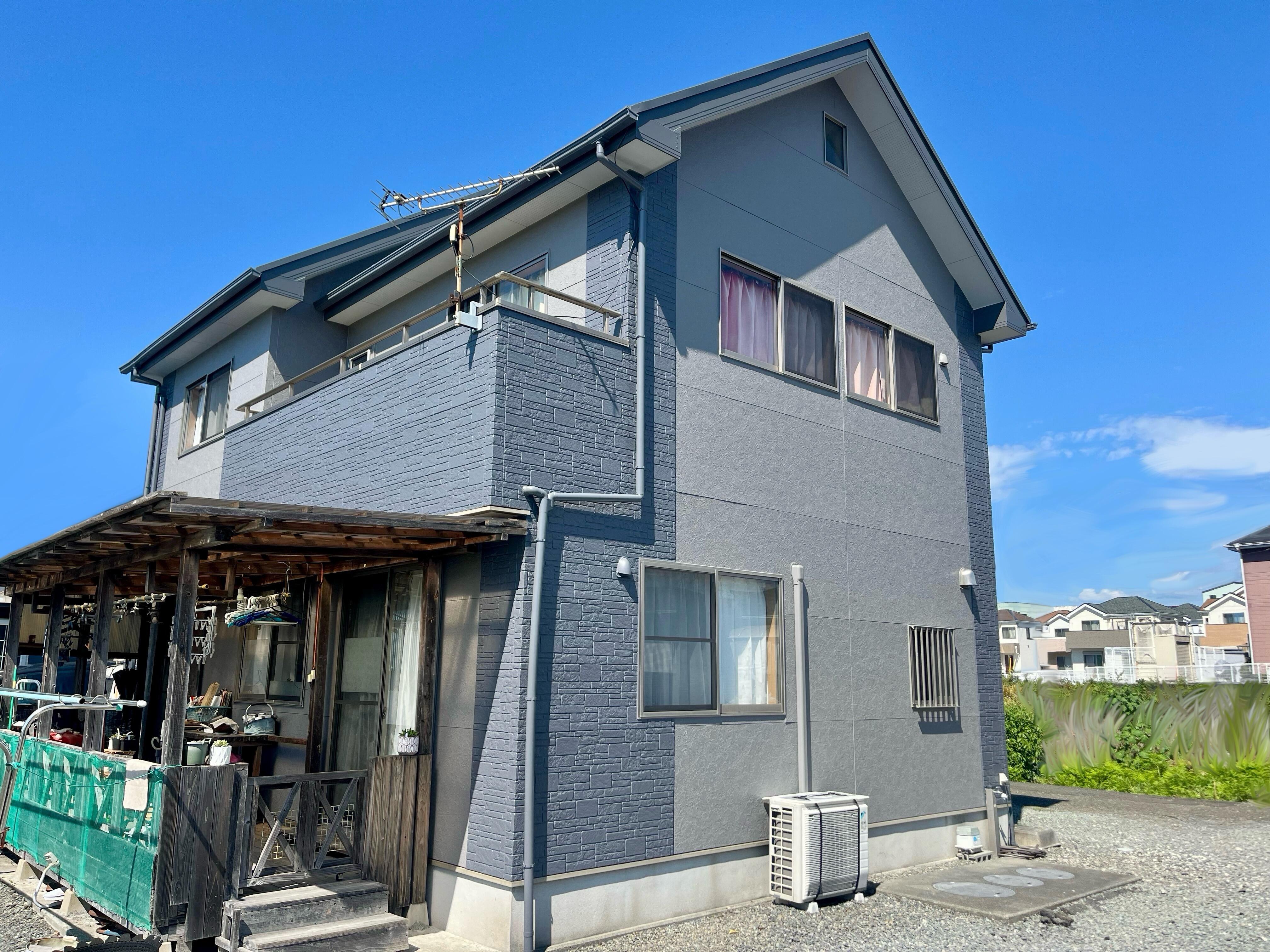 以前よりお付き合いのあるお客様よりのお問合わせでした。 築20年のサイディングの外壁で塗替えの時期を少しオーバーしてしまっている状態でした。家のカラーをどうしたいかで少し悩まれていましたがこちらの提案した色をベースにしてお客様が主導で決められ、工事はお施主様のご理解でスムースに完了いたしました。