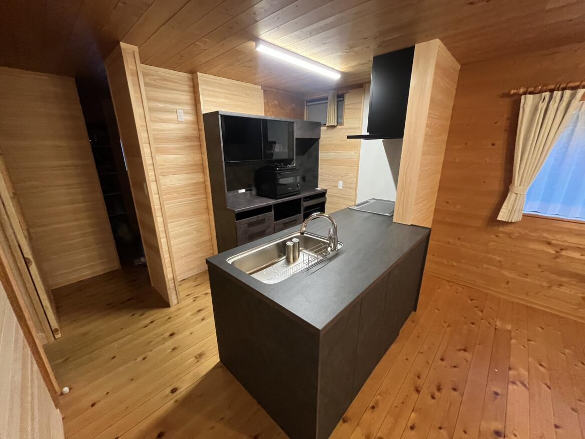 住宅2階部分のホール(兼リビング)、洋室をLDK、WICに改造 オープンだった1階吹き抜け部分に間仕切り壁を設置 キッチン リシェル新設 洗面化粧台交換 トイレ サティスSに交換 照明器具新設4(人感センサー付3) 交換1(LED)