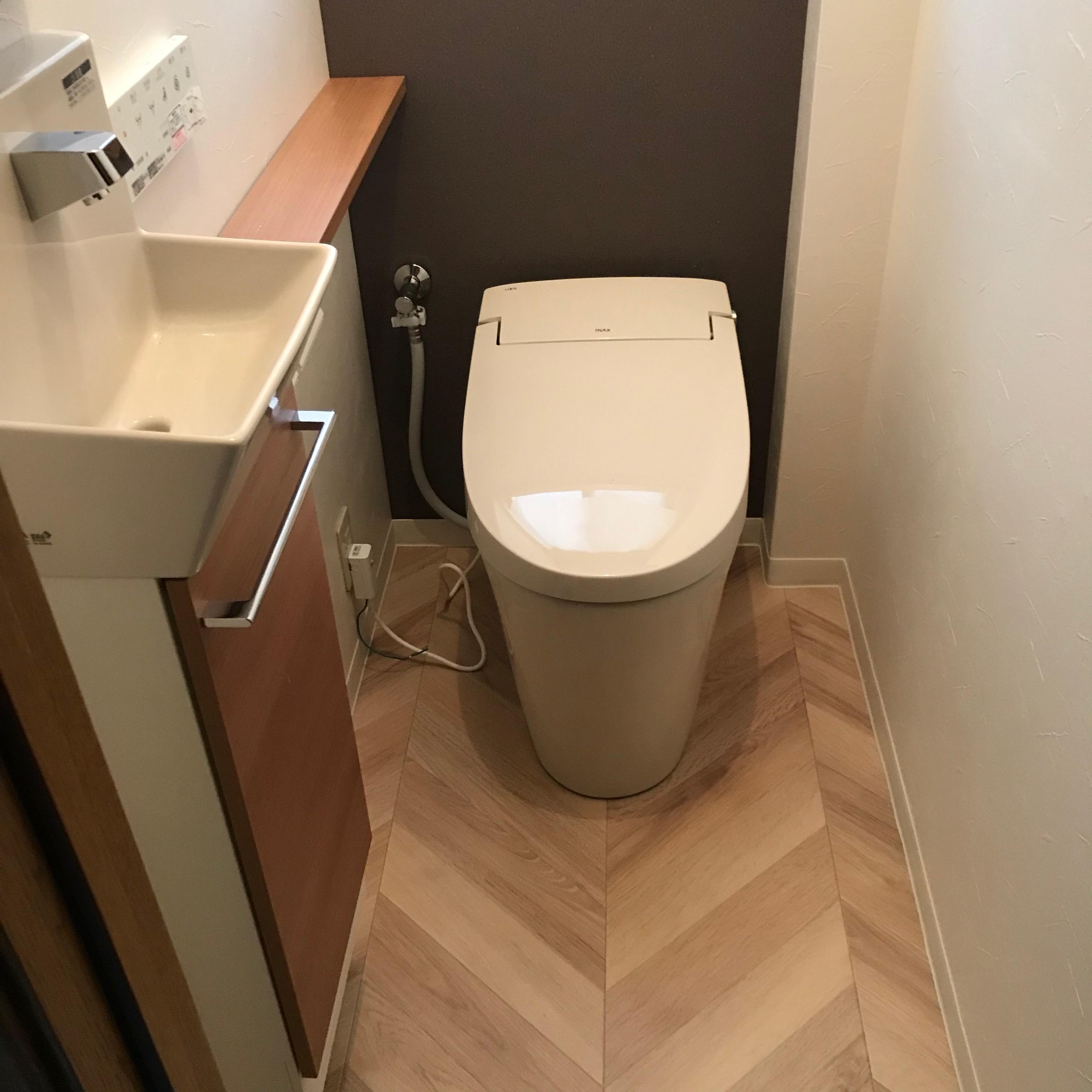 お客様の選ばれたヘリンボーン柄のCFの床が