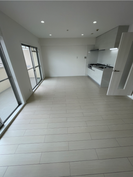 築34年の中古マンションのフルリノベーション事例のご紹介です。 和室の仕切りを撤去して開放感のある広々リビングになりました。 どんな家具でも合うように、ホワイトベースのシンプルなイメージ の仕上がりになっています。 キッチン・浴室・洗面化粧台・トイレ・フローリング・壁・天井・ 収納の扉を新調いたしました。