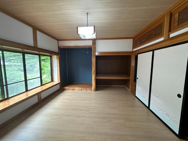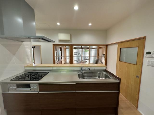 打合せでは、『飼い猫ちゃんを見ながら食事の準備や生活が出来たら楽しい‼』とお客様のご希望がありました。キッチンと茶の間を対面にし、間の戸を面格子にしました。これでいつでも猫ちゃんの様子を見ることができます。また、以前飼われていた猫ちゃんの爪痕が残る思い出の柱も残しました。