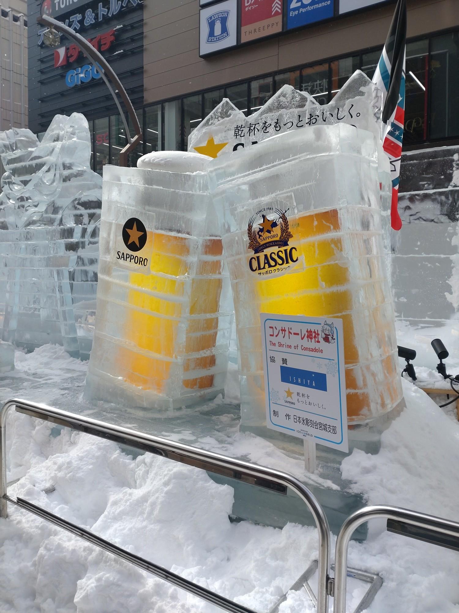 ついで(?)に、すすきの会場の氷の彫刻も観てきました。![]()